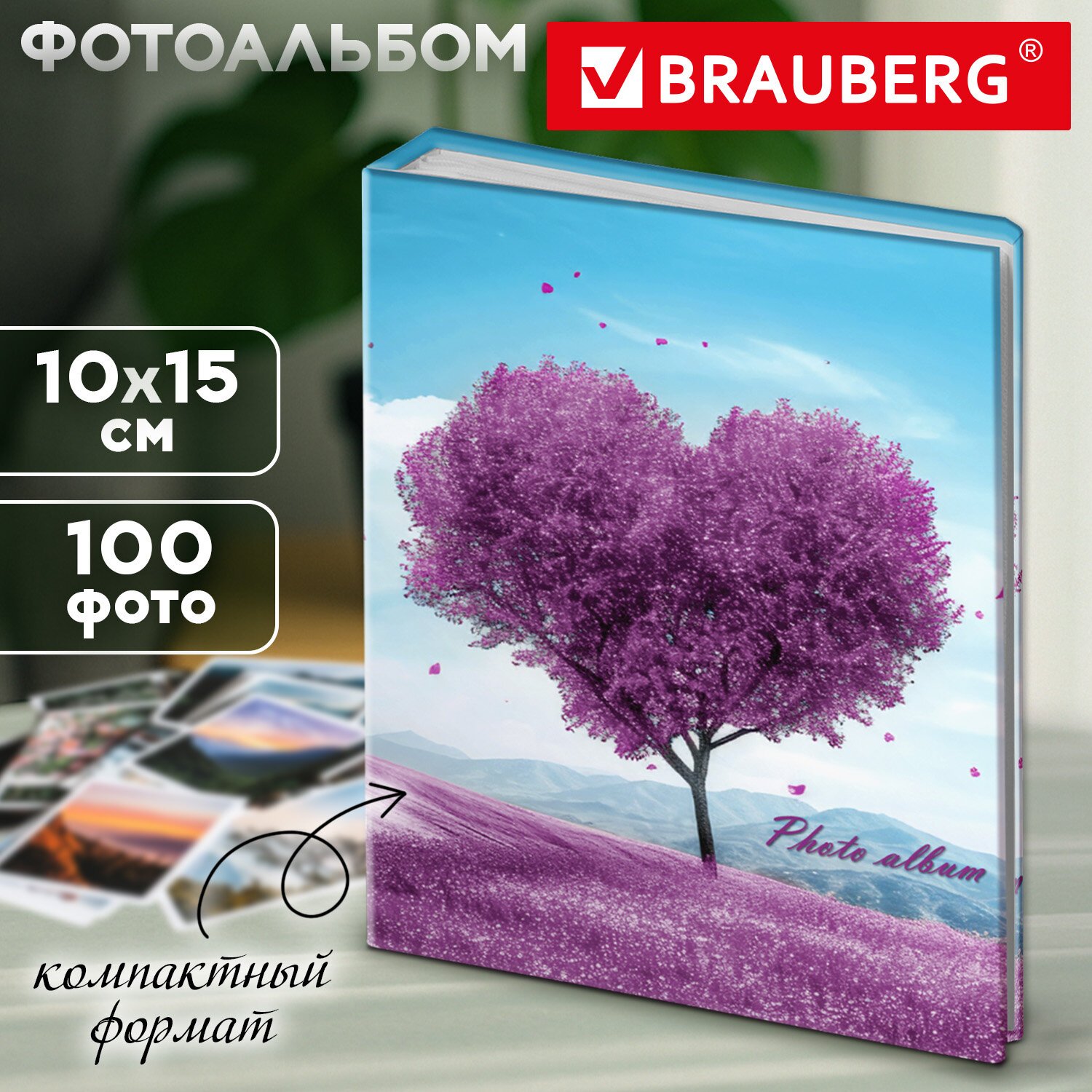 Фотоальбом BRAUBERG на 100 фото 10*15 см, твердая обложка, "Fancy heart", 391439