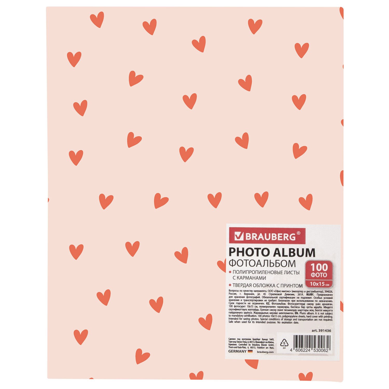 Фотоальбом BRAUBERG на 100 фото 10*15 см, твердая обложка, "Pink hearts", 391436