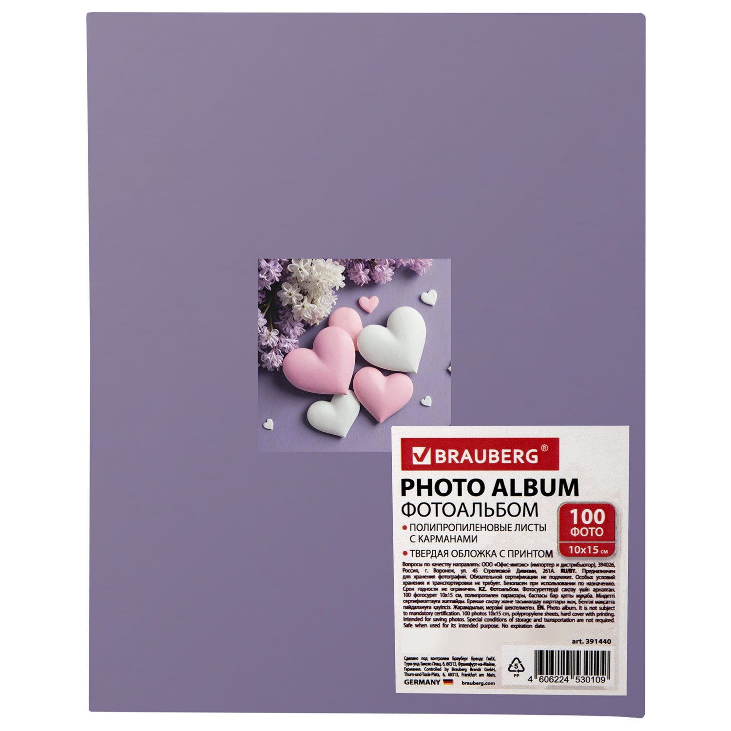 Фотоальбом BRAUBERG на 100 фото 10*15 см, твердая обложка, "Pink hearts", 391436