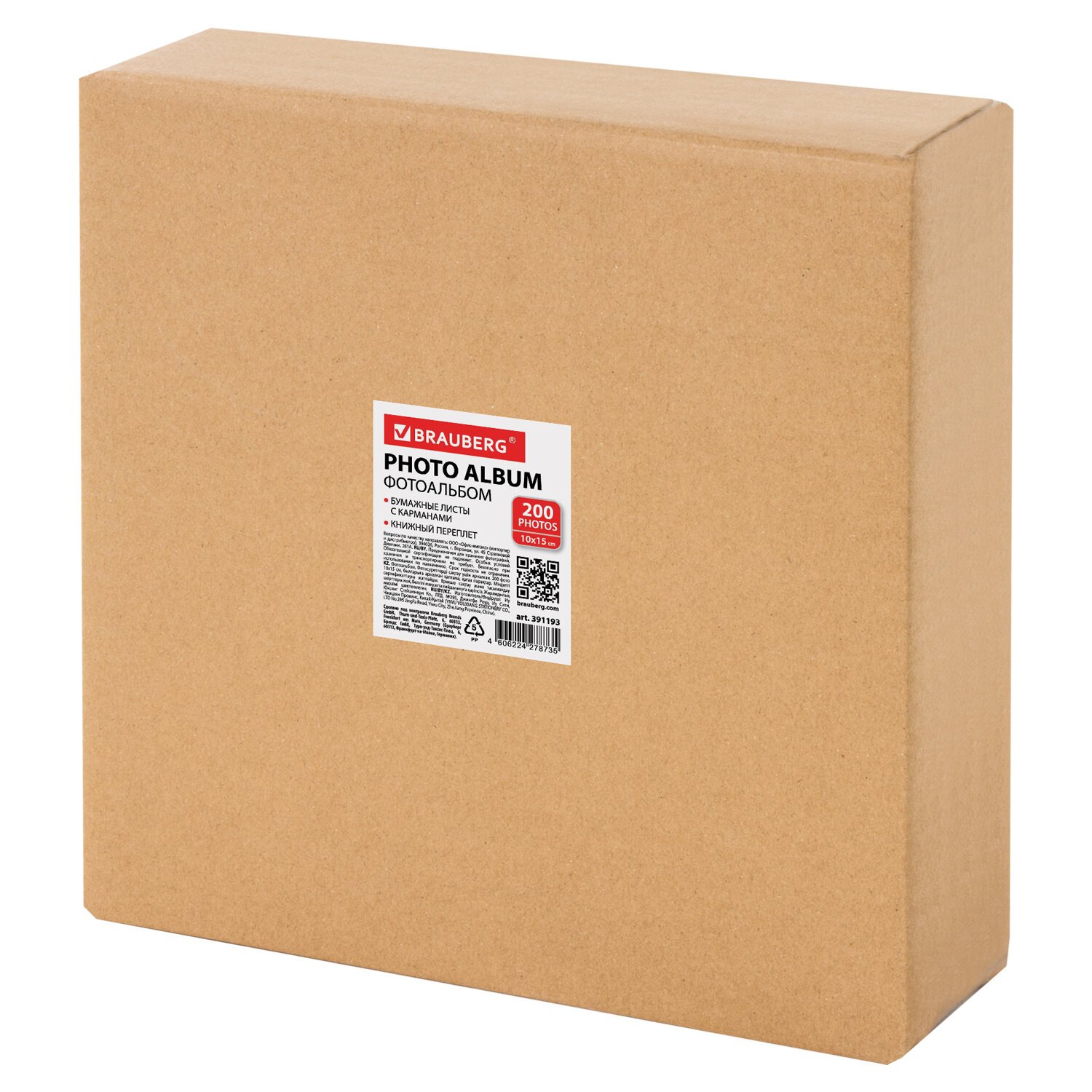 Фотоальбом BRAUBERG на 200 фото. 10х15 см, под замшу, бумажные страницы, бокс, белый с черным, 391114