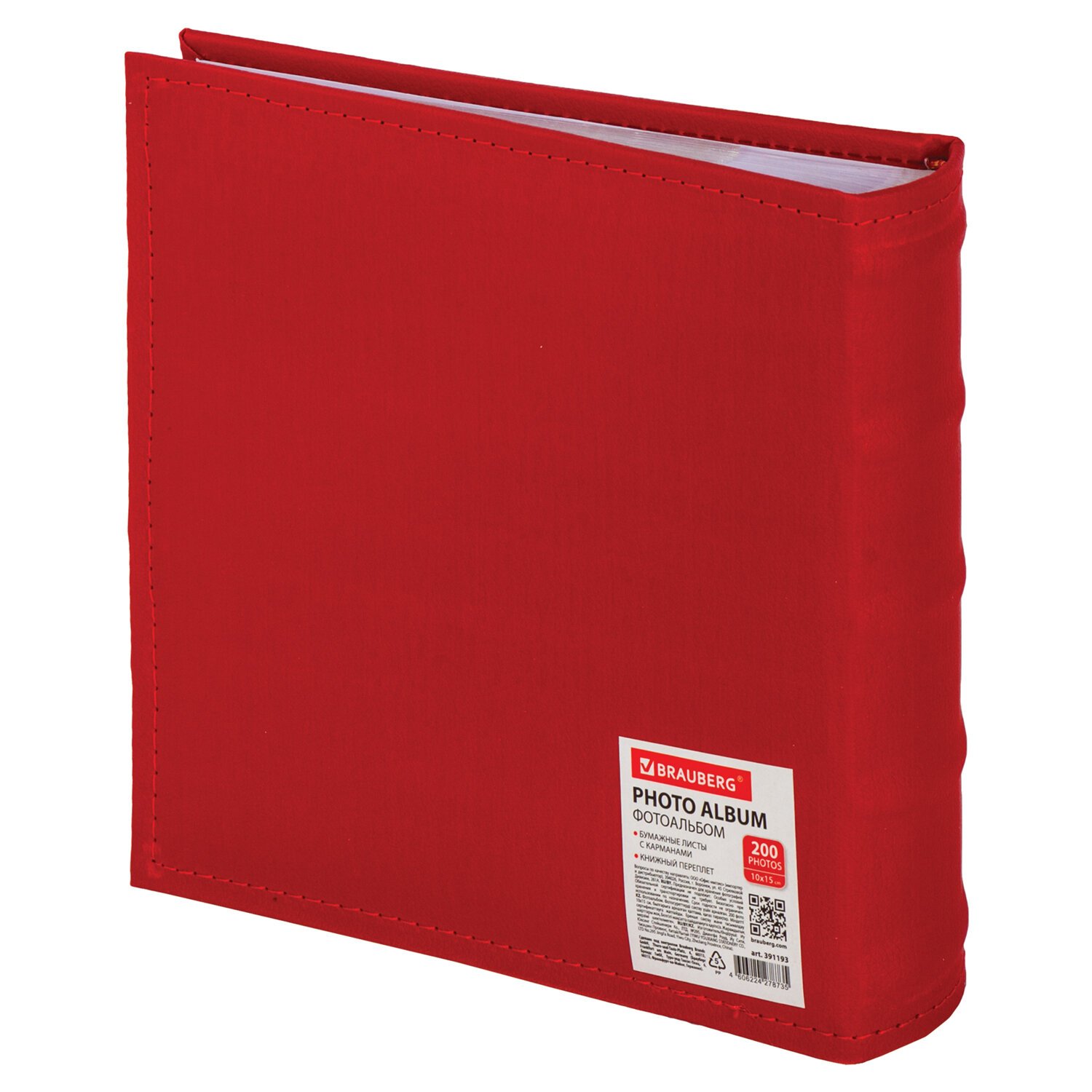 Фотоальбом BRAUBERG на 200 фото 10х15 см, под кожу, бумажные страницы, бокс, красный, 391193