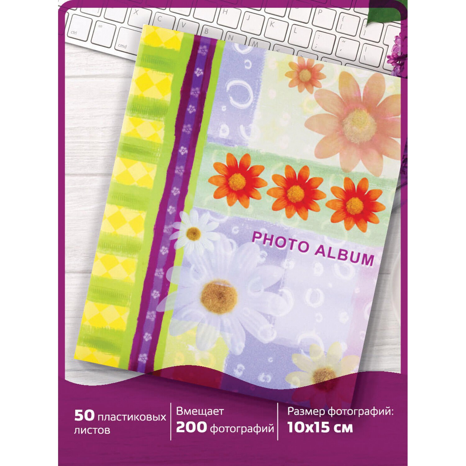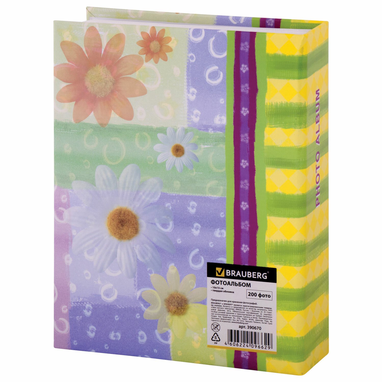 Фотоальбом BRAUBERG на 200 фото 10х15 см, твердая обложка, "Цветочки", разноцветный, 391119