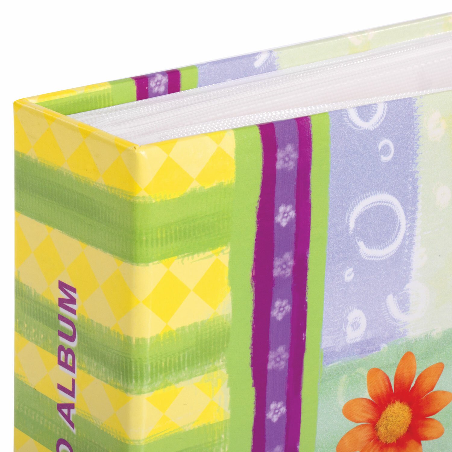 Состоит из 50 полипропиленовых листов размером 17,5х22 см с карманами и вмещает 200 фотографий размером 10х15 см по 2 штуки на странице. Обложка фотоальбома выполнена в жизнерадостном ярком дизайне, а его листы склеены в единый блок. Размер - 18х23 см.