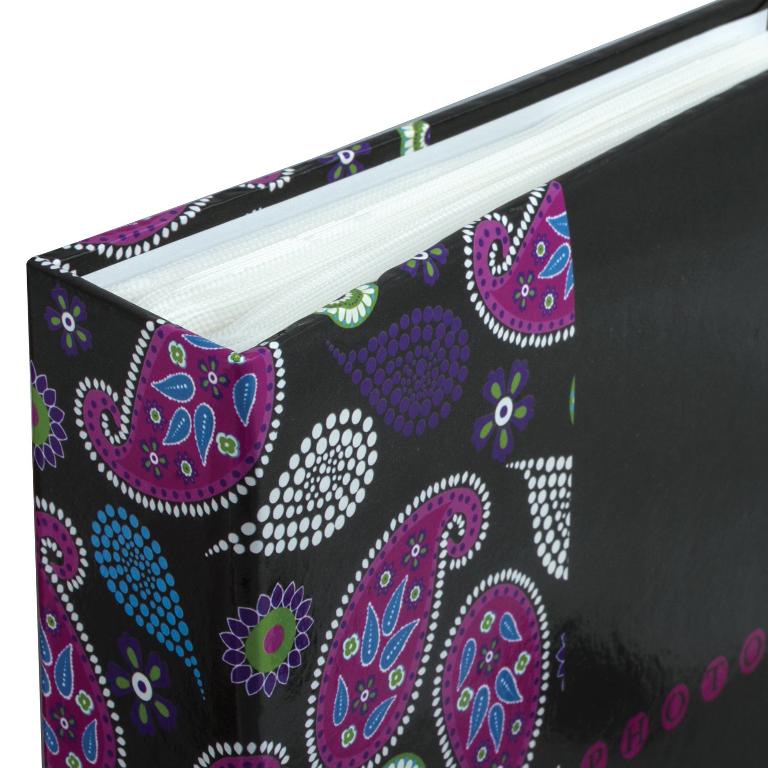 Фотоальбом BRAUBERG на 200 фотографий 10х15 см, твердая обложка, "Пейсли", черный с розовым, 390668