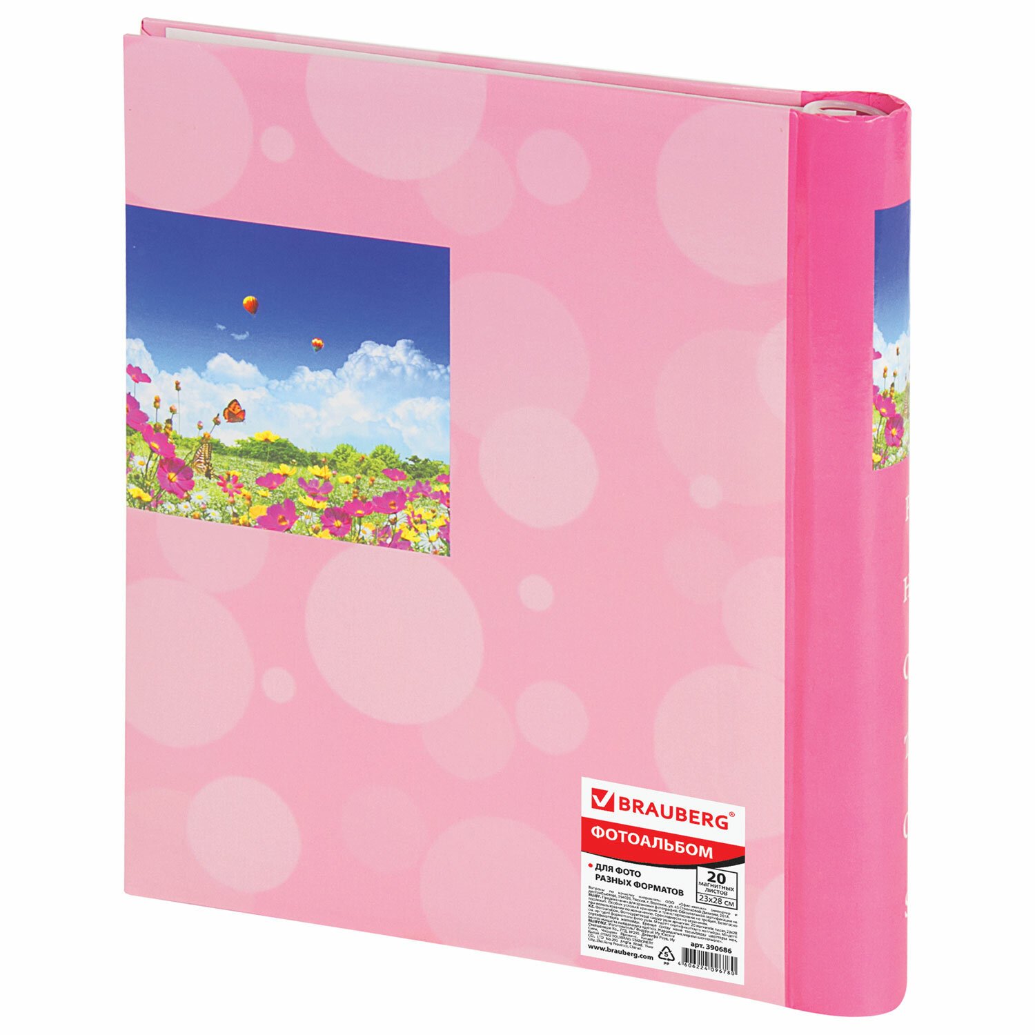 Фотоальбом BRAUBERG на 20 магнитных листов, 23х28 см, "Дивный луг", розовый, 390686