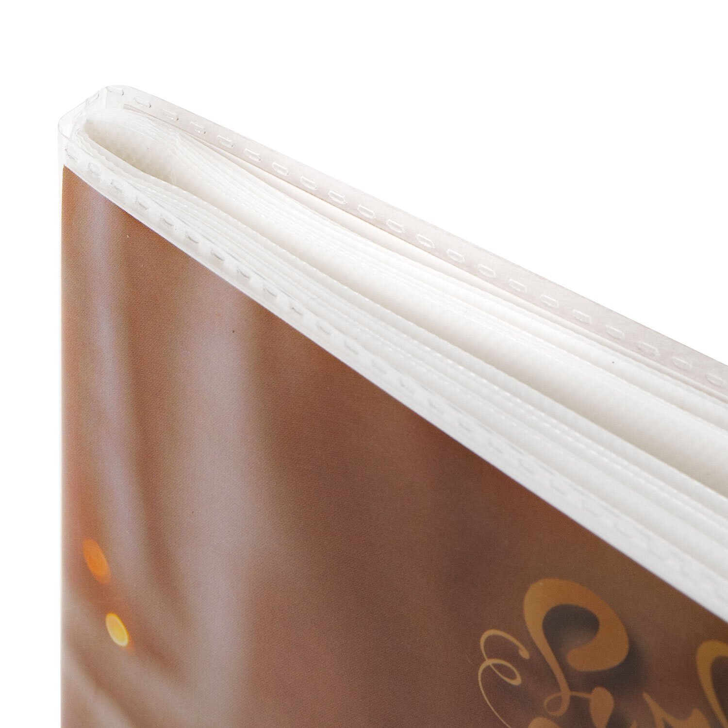 Состоит из 18 полипропиленовых листов размером 11,5х15,15 см с карманами и вмещает 36 фотографий размером 10х15 см по 1 штуке на странице. Обложка фотоальбома выполнена в бежевых тонах, а его листы склеены в единый блок. Размер - 12х16 см.