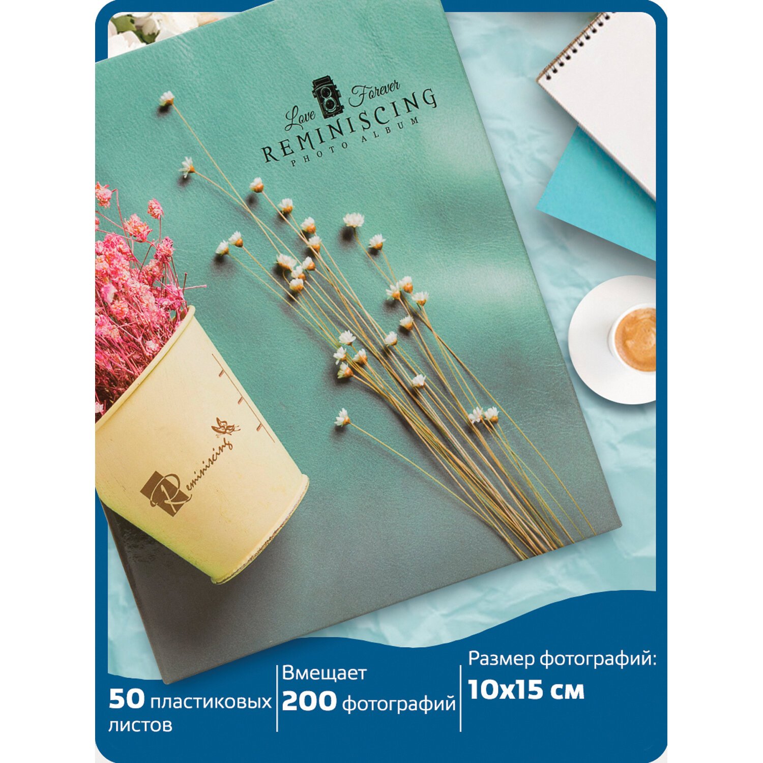 Фотоальбом BRAUBERG "На бирюзовом фоне" на 200 фото 10х15 см, твердая обложка, термосварка, 391166