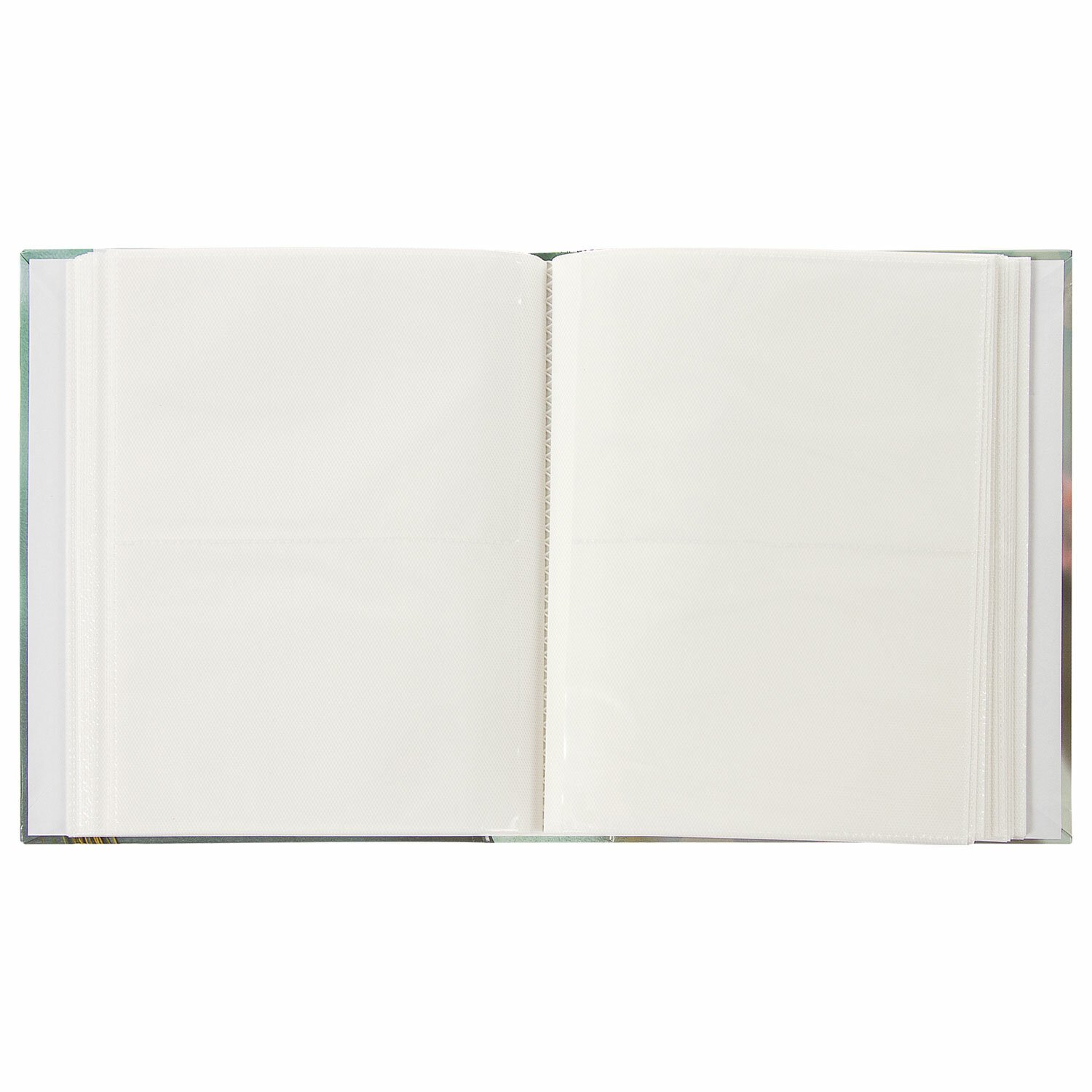Состоит из 50 полипропиленовых листов размером 17,5х22 см с карманами и вмещает 200 фотографий размером 10х15 см по 2 штуки на странице. Обложка фотоальбома выполнена в необычном бирюзовом стиле. Размер - 18х23 см.
