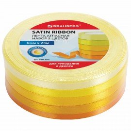 Лента атласная ширина 6 мм, ЖЕЛТЫЙ СПЕКТР набор 5 цветов по 23 м, BRAUBERG, 591495