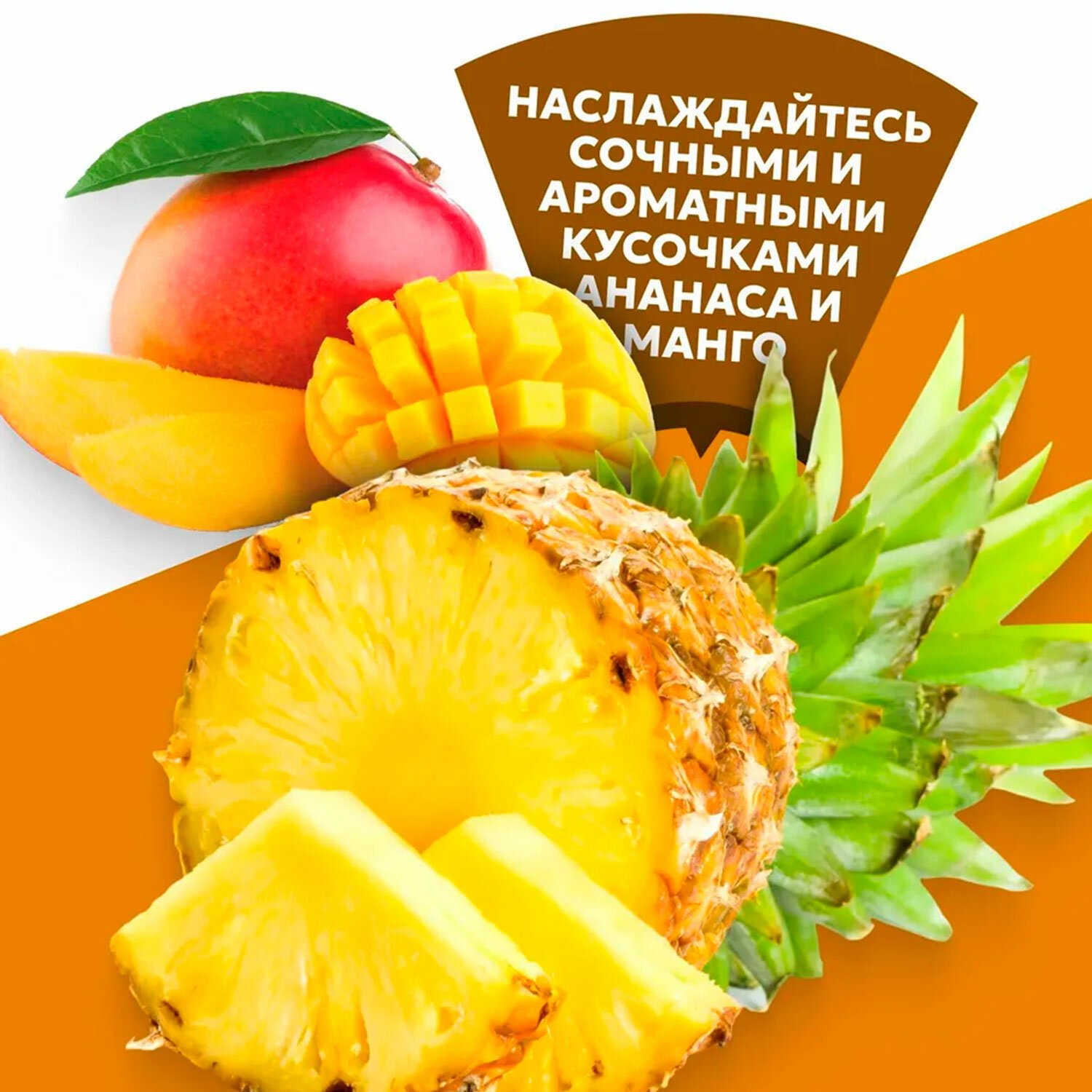 Состав: отборные плоды фруктов (ананас, манго), сахар, консервант (пиросульфит натрия).