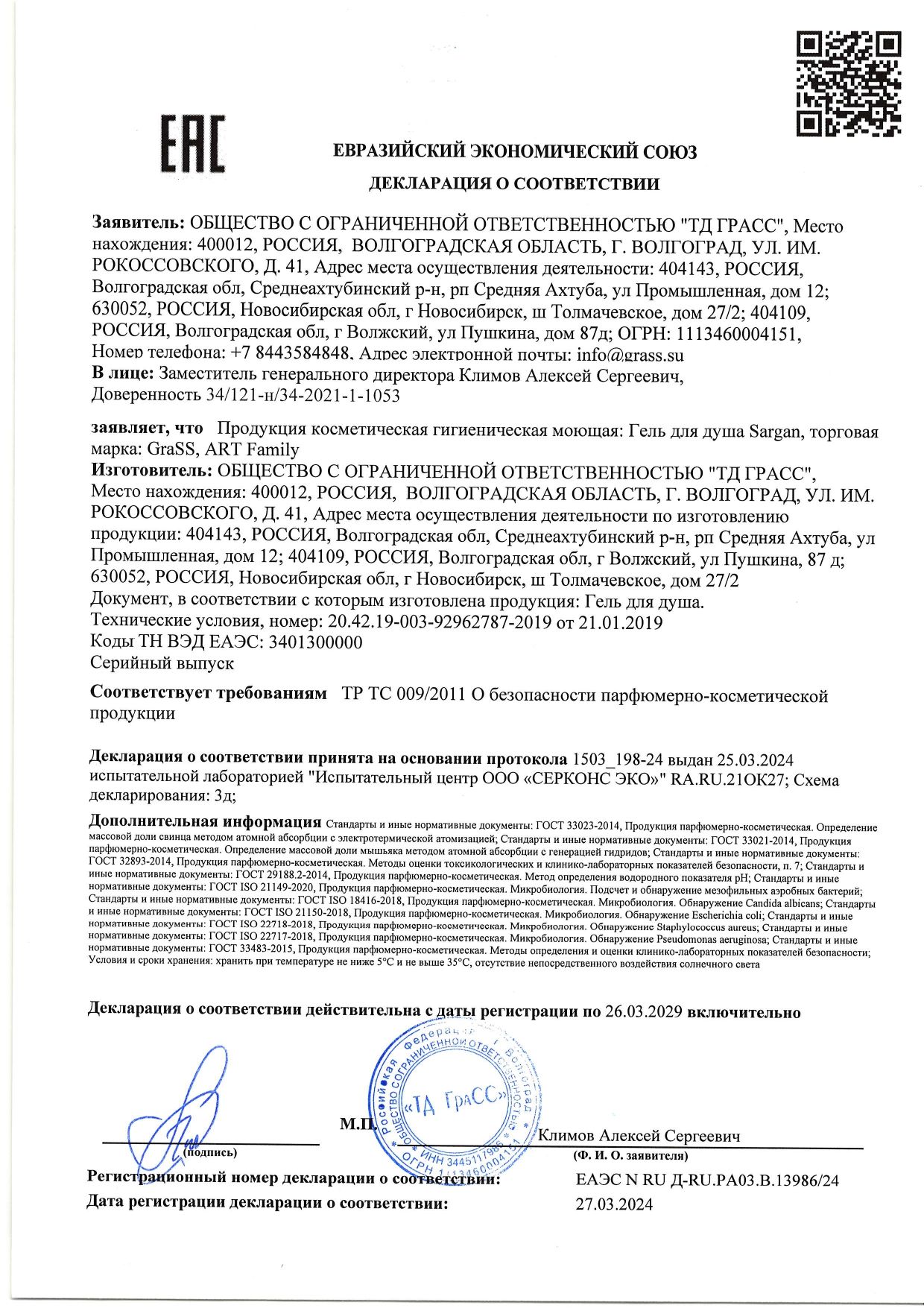 Гель для душа GRASS SARGAN бережно очищает, не пересушивает и питает кожу. Обладает тонизирующим эффектом.