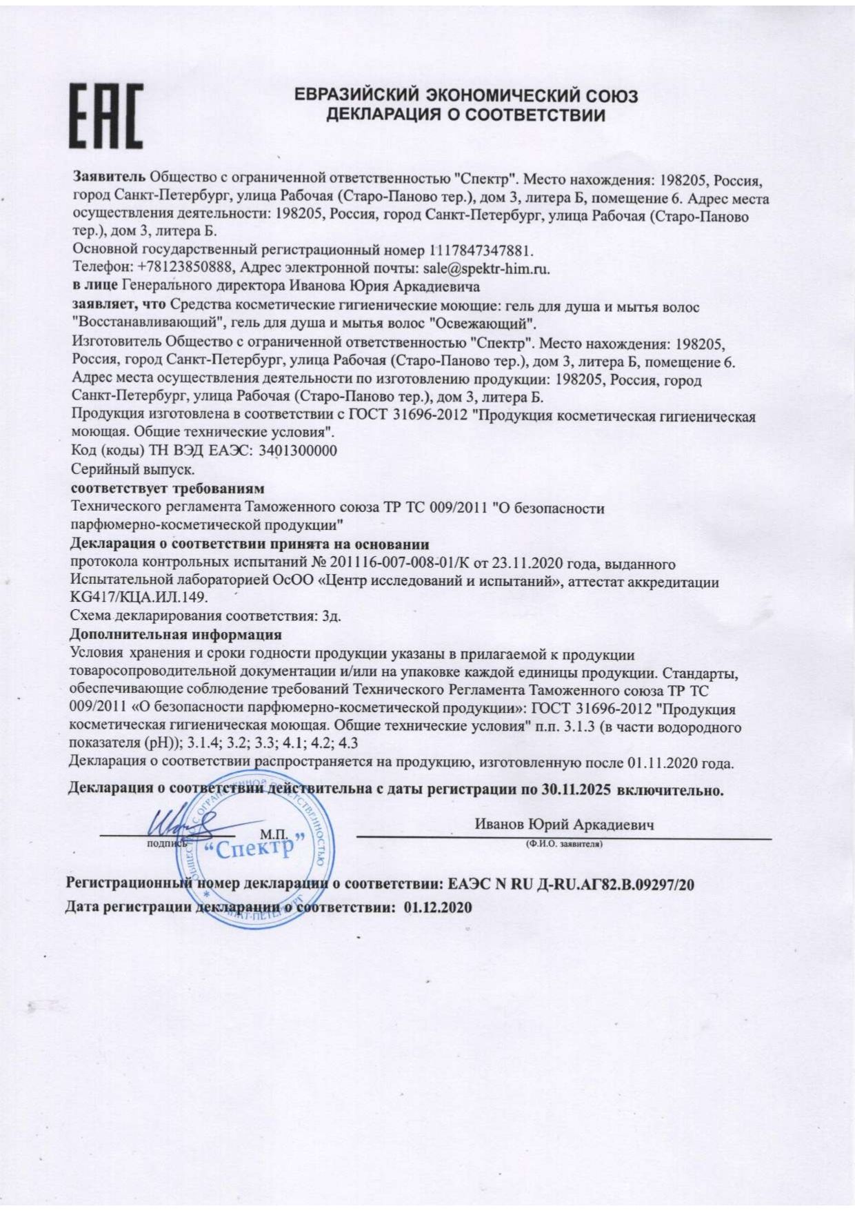 Гель для душа и мытья волос "Восстанавливающий" предназначен для мытья тела и волос.