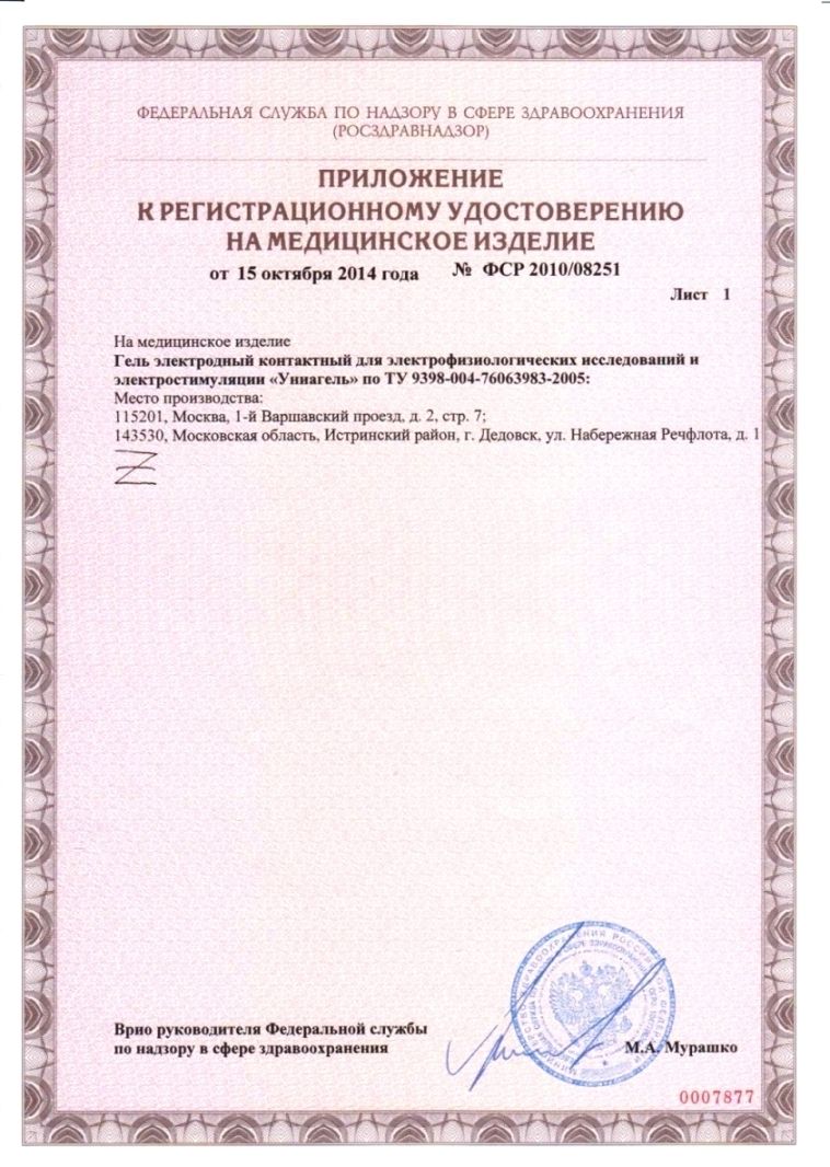 Универсальный электродный гель для электрофизиологических медицинских исследований: регистрации ЭКГ, ЭЭГ, РЭГ, холтеровского мониторирования, велоэргометрии, а также для электромиографии и электромиостимуляции.