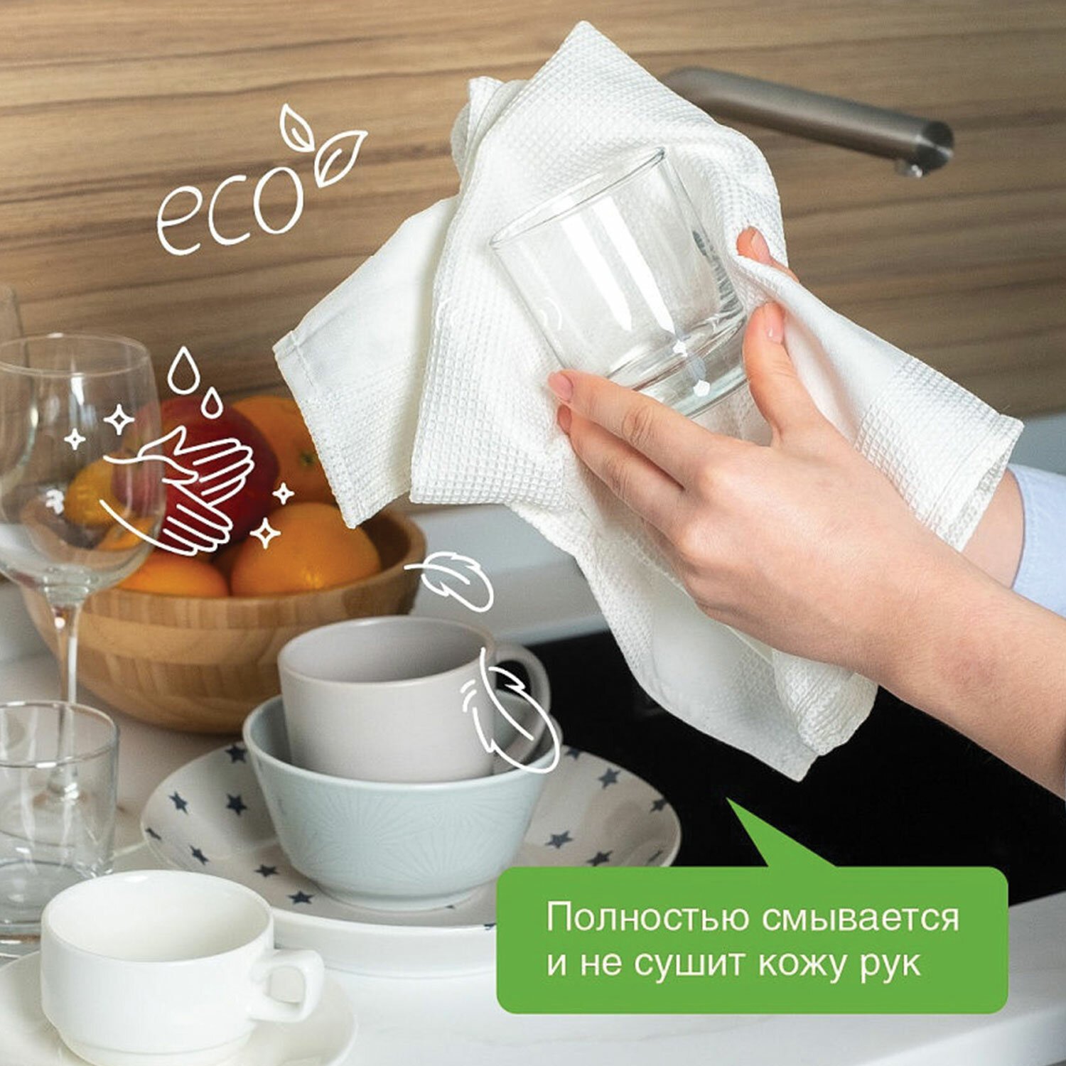 Концентрированное высокопенное средство для мытья всех видов посуды и удаления любых видов загрязнений. Подходит для мытья фруктов, детской посуды и игрушек. Эффективно устраняет запахи, удаляет жир даже в холодной воде. 100% смываемость.