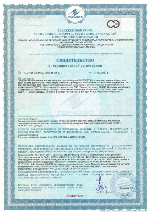 Биоразлагаемый концентрированный гель для посуды с антибактериальным эффектом SYNERGETIC – это экологичное, безопасное и эффективное средство для мытья всех видов посуды, в том числе детской, кухонного инвентаря и детских игрушек от любых видов загрязнений. Не оставляет следов на посуде. Мягкие биоразлагаемые тензиды из растительного масла обеспечивают хорошее пенообразование и эффективно удаляют жир и запахи даже в холодной воде. Растительный глицерин в составе средства защищает кожу рук от сухости и раздражения. Гипоаллергенная парфюмерная композиция с эфирными маслами аира, гальбанума, мяты, шалфея, лемонграсса и муската придает средству нежный и приятный аромат. Гипоаллергенный гель дерматологически протестирован в Европе. Международный экологический сертификат ICEA подтверждает биоразлагаемость, безопасность и эффективность средства. Биоразлагаемые компоненты не вредят микрофлоре септических установок. Попадая в среду септика, гель без труда распадается на простые соединения.