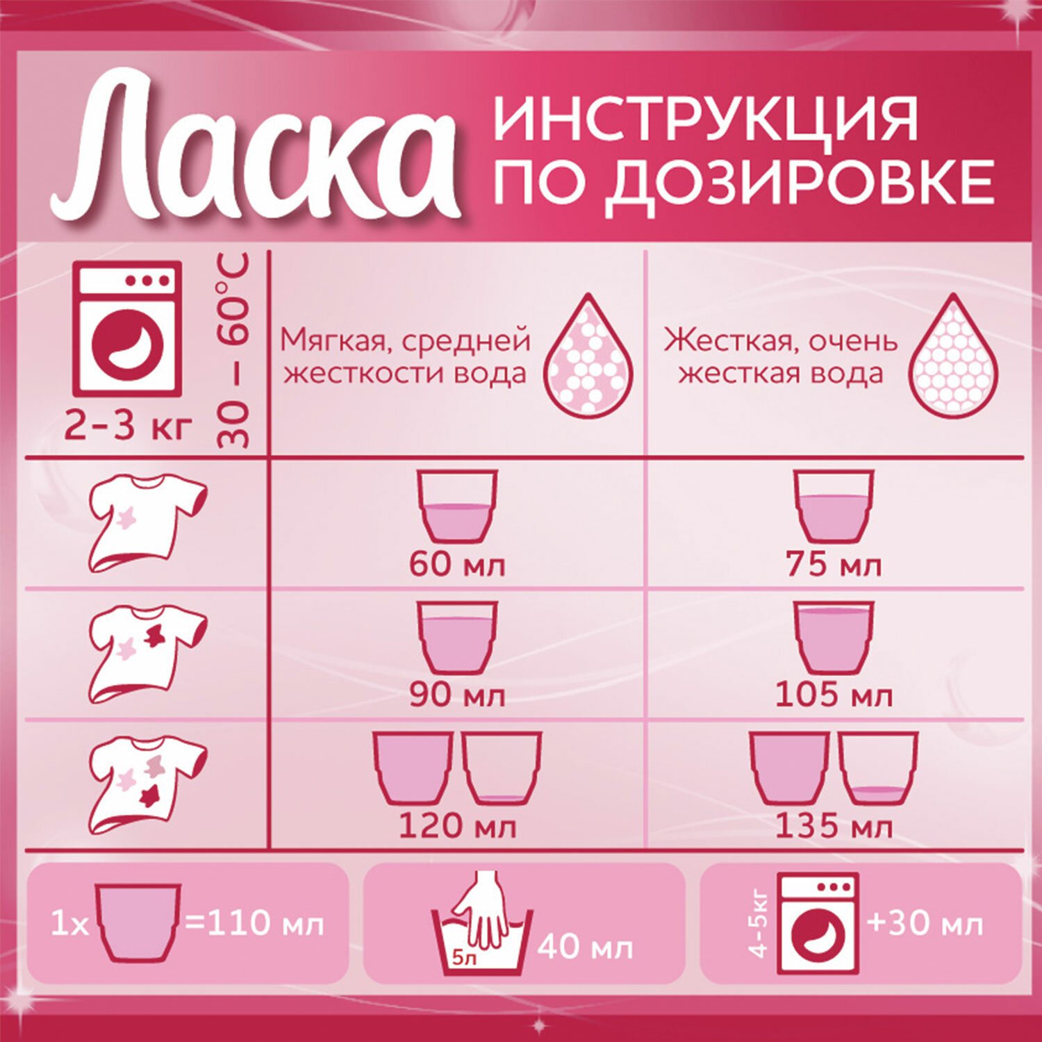 Ласка «Восстановление цвета» благодаря специально разработанной системе защиты цвета сохраняет структуру ткани, восстанавливает яркость и интенсивность цвета даже после частых стирок. Предохраняет от выцветания. Для ручной и автоматической стирки.