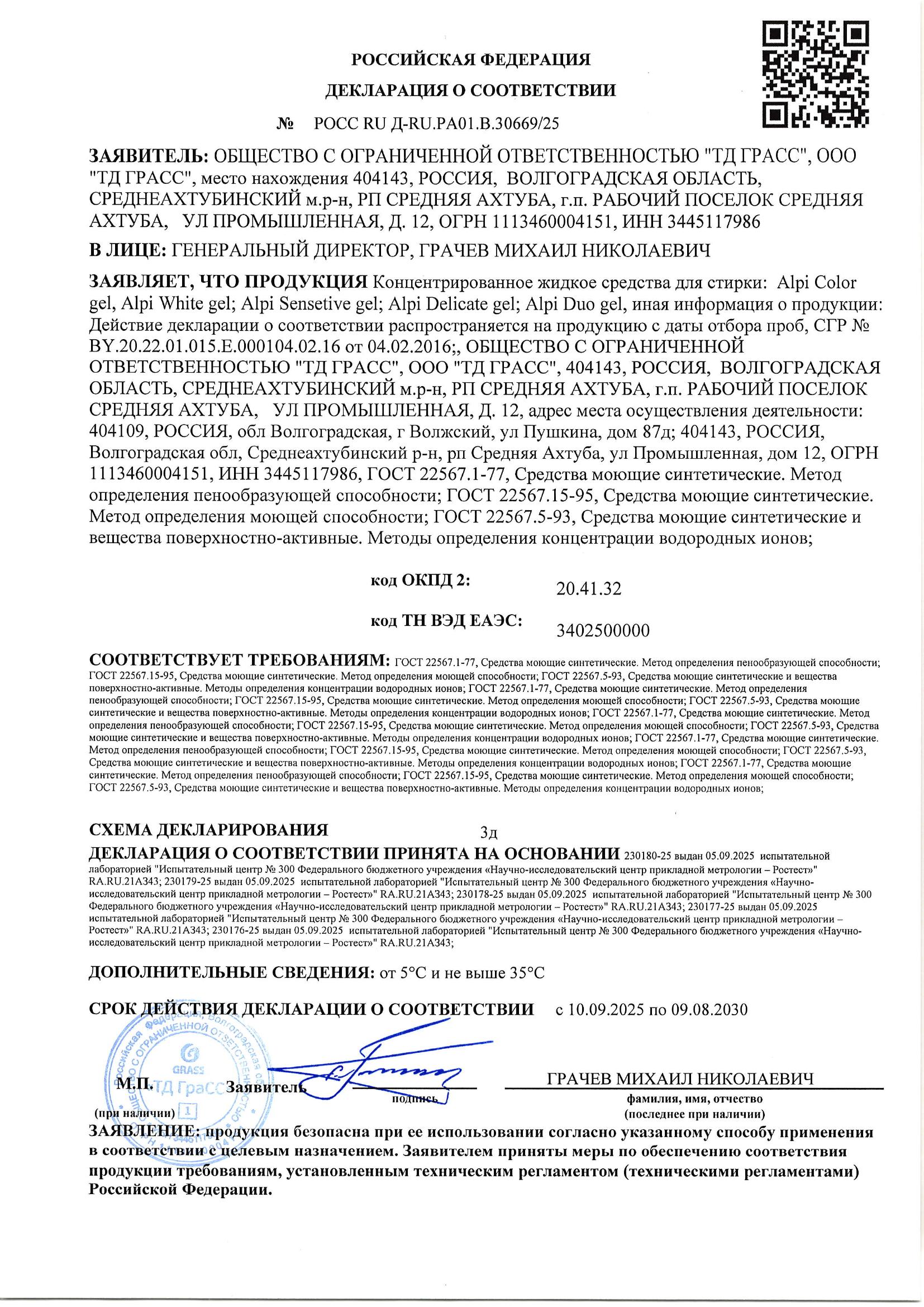 Концентрированное жидкое средство для стирки Alpi Delicate gel kids. Предназначено для стирки и замачивания изделий из хлопчатобумажных, льняных, синтетических тканей и тканей из смешанных волокон в стиральных машинах любого типа и ручной стирки.