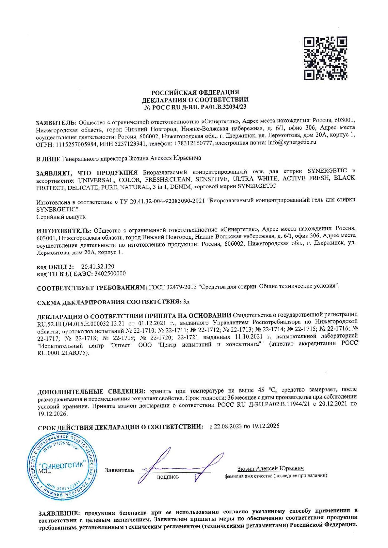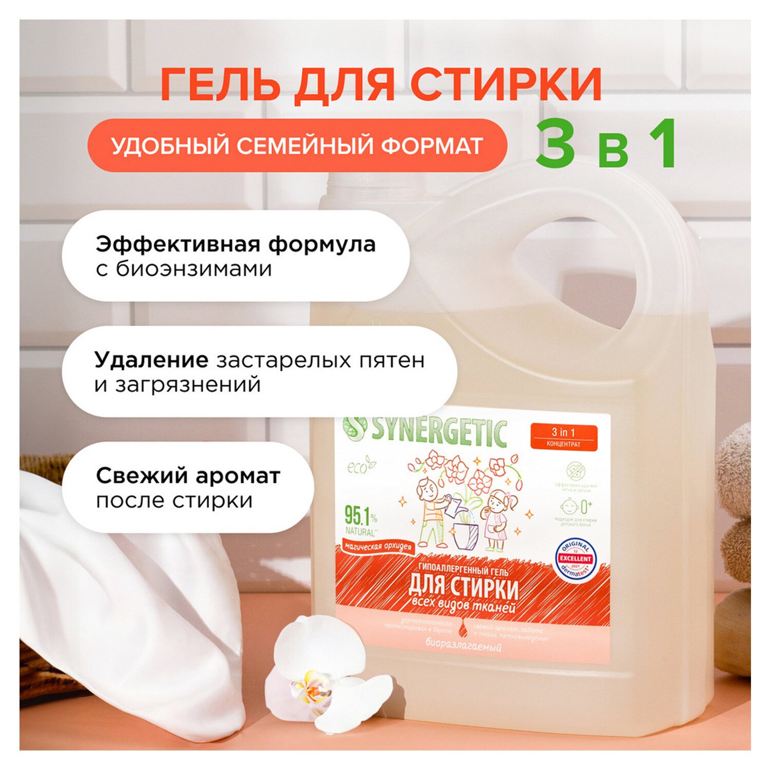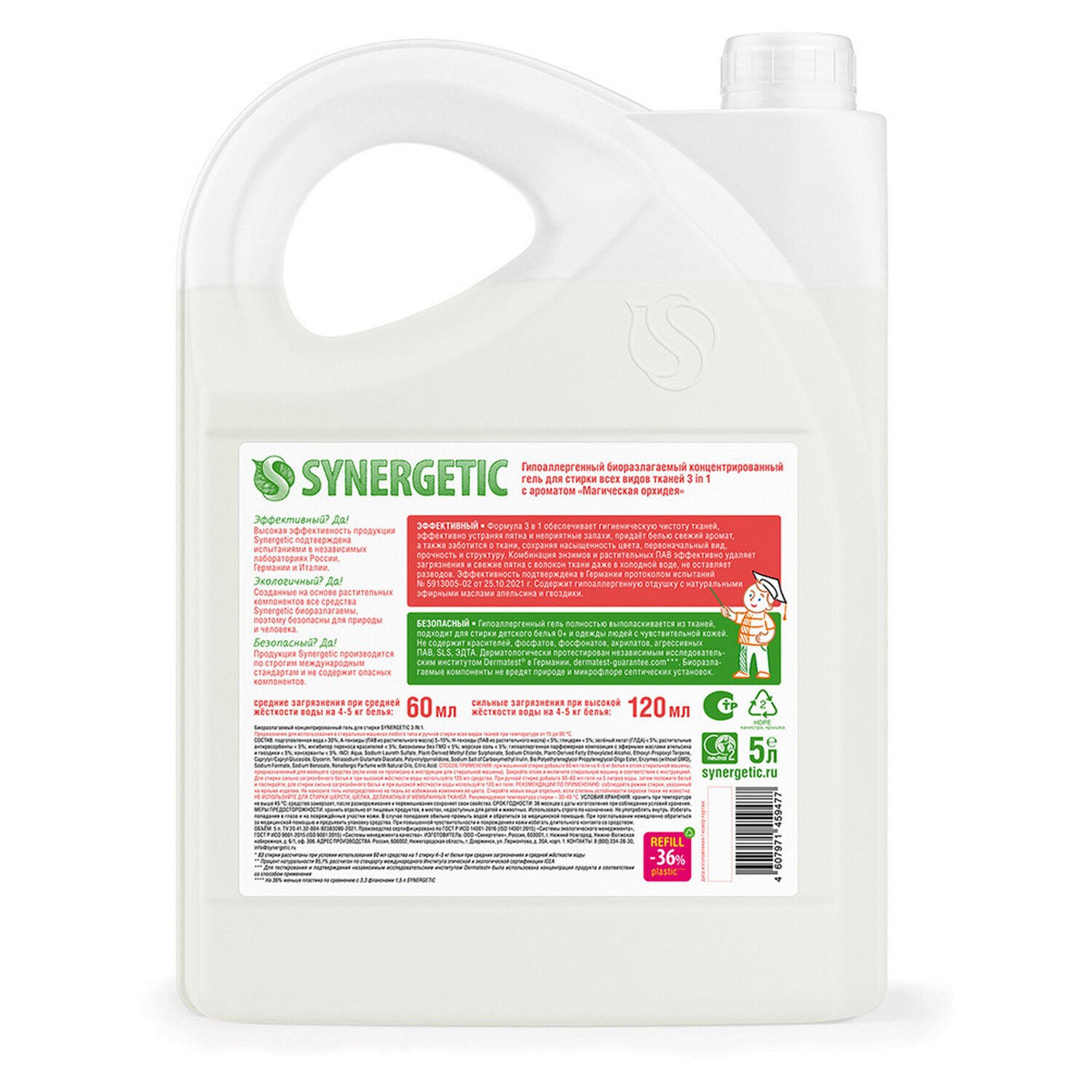SYNERGETIC "Магическая орхидея" - это средство для ручной и машинной стирки изделий из различных видов тканей. Не содержит хлора. Входящие в состав компоненты сохраняют характеристики и качество тканей.