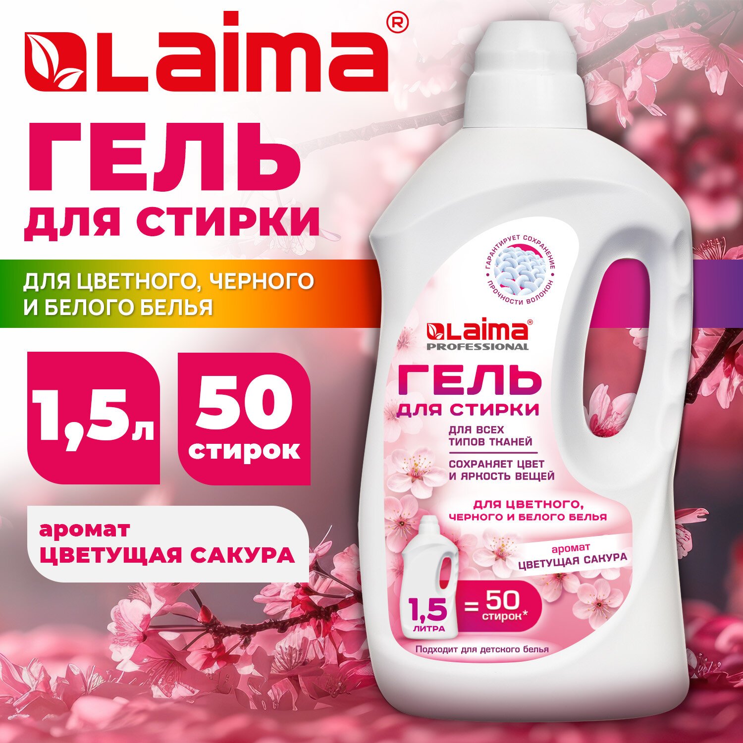 Гель для стирки всех видов тканей универсальный 1,5л LAIMA PROFESSIONAL "Цветущая сакура", 702186