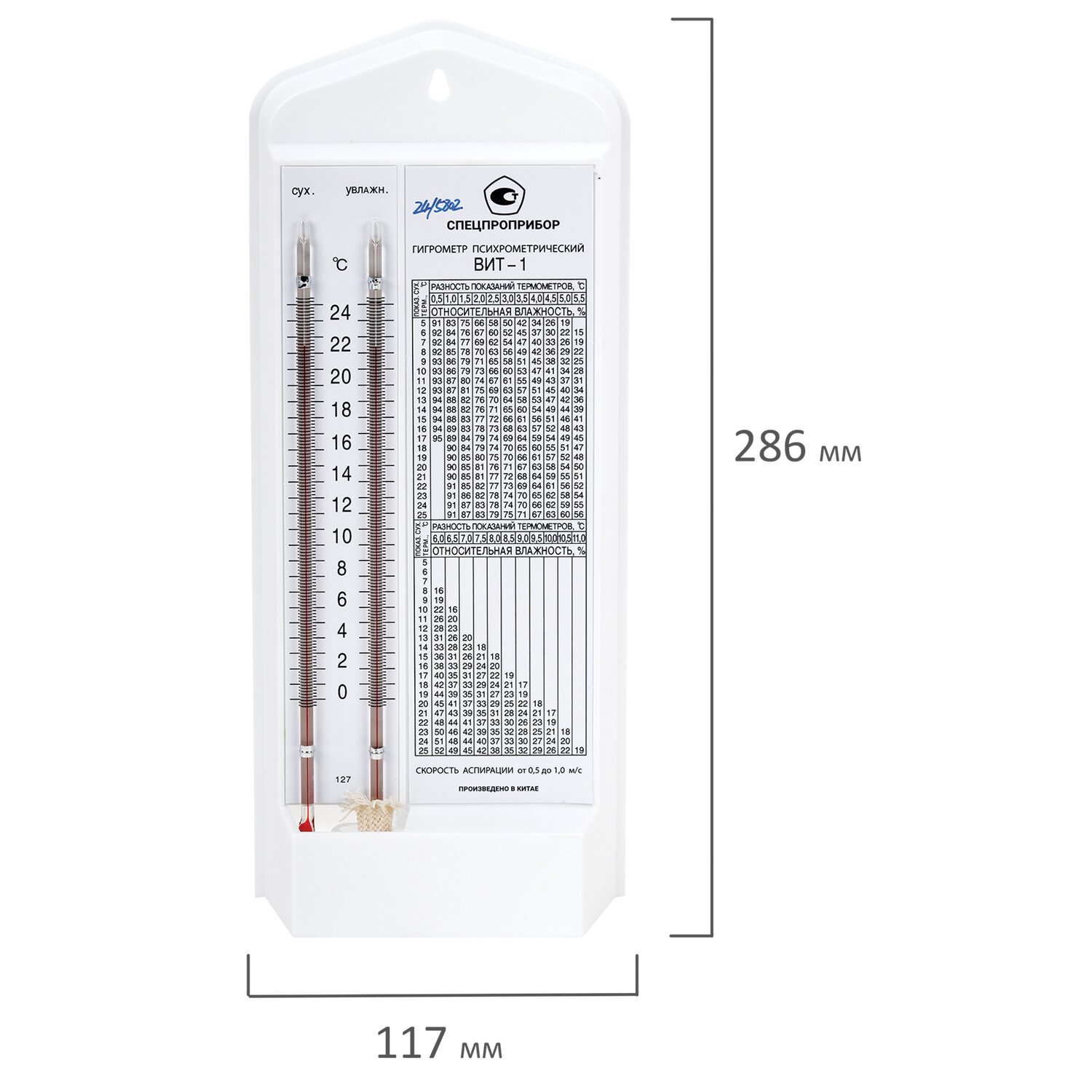 Гигрометр психрометрический ВИТ-1 с поверкой РФ, диапазон: от 0 до +25 °С, ПТЗ ш/к 32600