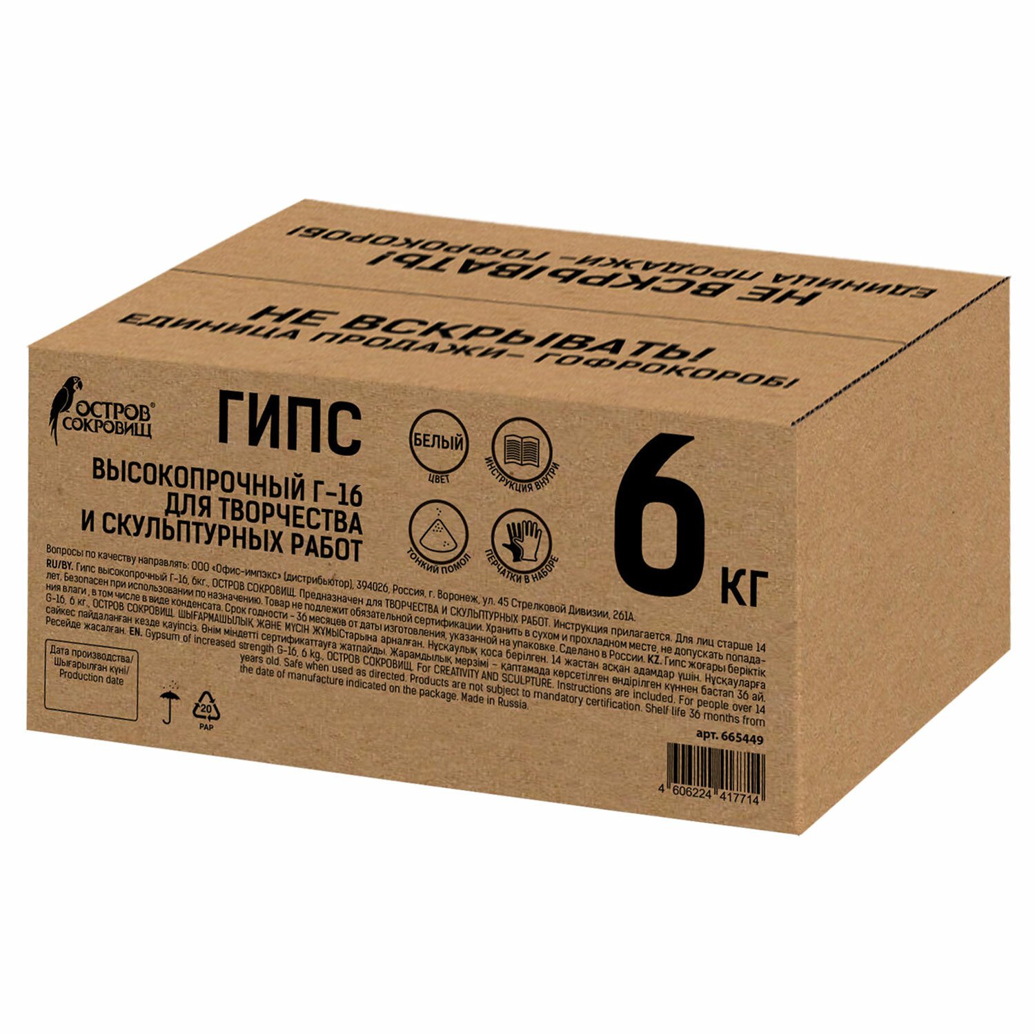 Гипс скульптурный для творчества, 6 кг, прочность Г-16, ЧКЗ, ОСТРОВ СОКРОВИЩ, 665449