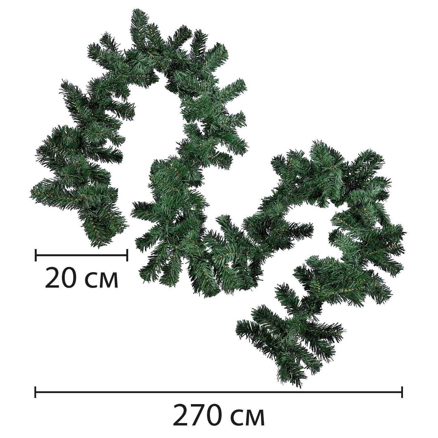 Гирлянда выполнена из ПВХ, имитирующего свежие хвойные ветки. Длина 270 см — идеально подходит для украшения дверного проёма, лестничных перил. Можно разместить не только на вертикальную, но и горизонтальную поверхность, сделав частью новогоднего украшения и декорации.