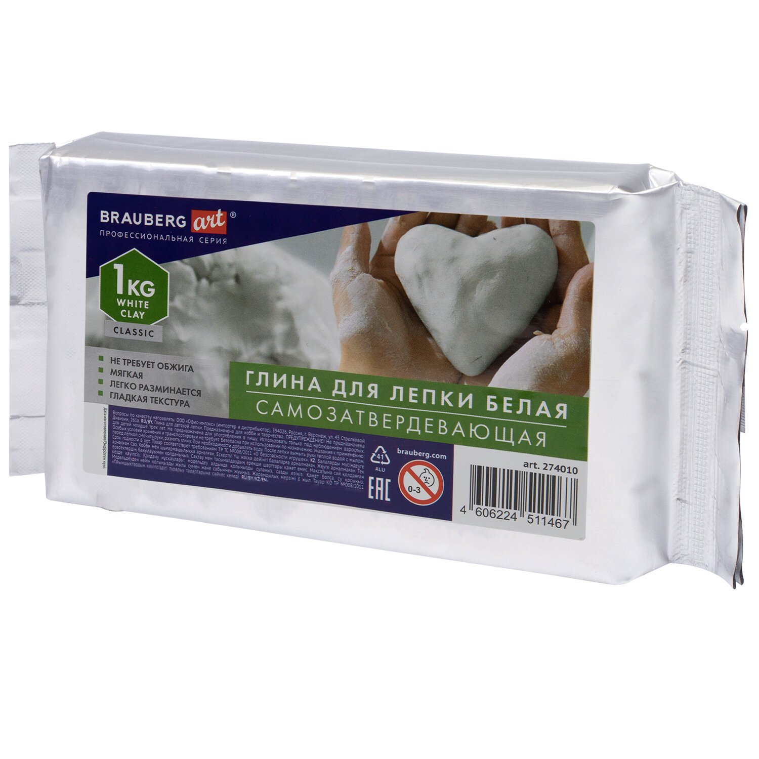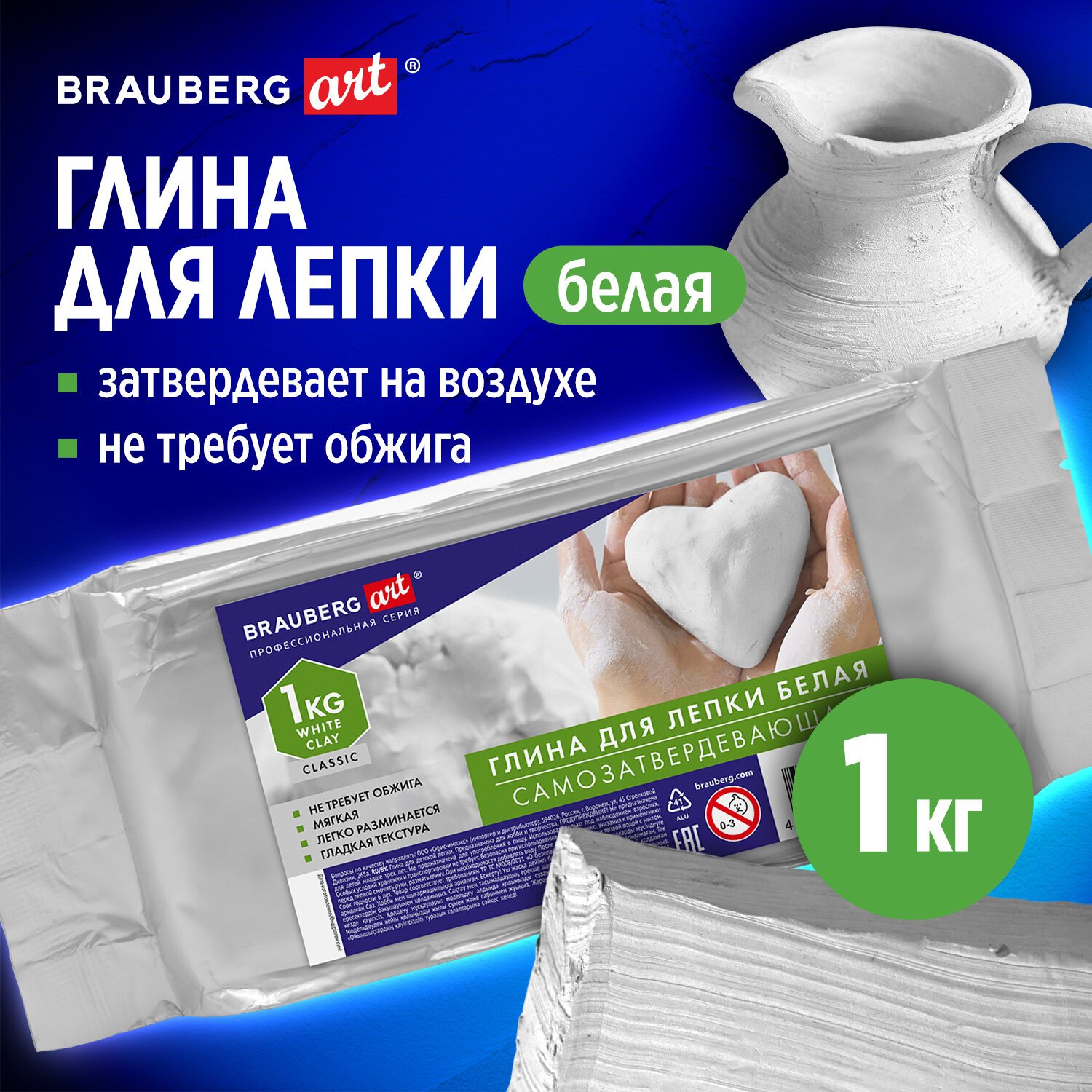 Глина для лепки (масса для моделирования) самозатвердевающая белая 1 кг BRAUBERG ART CLASSIC, 274010