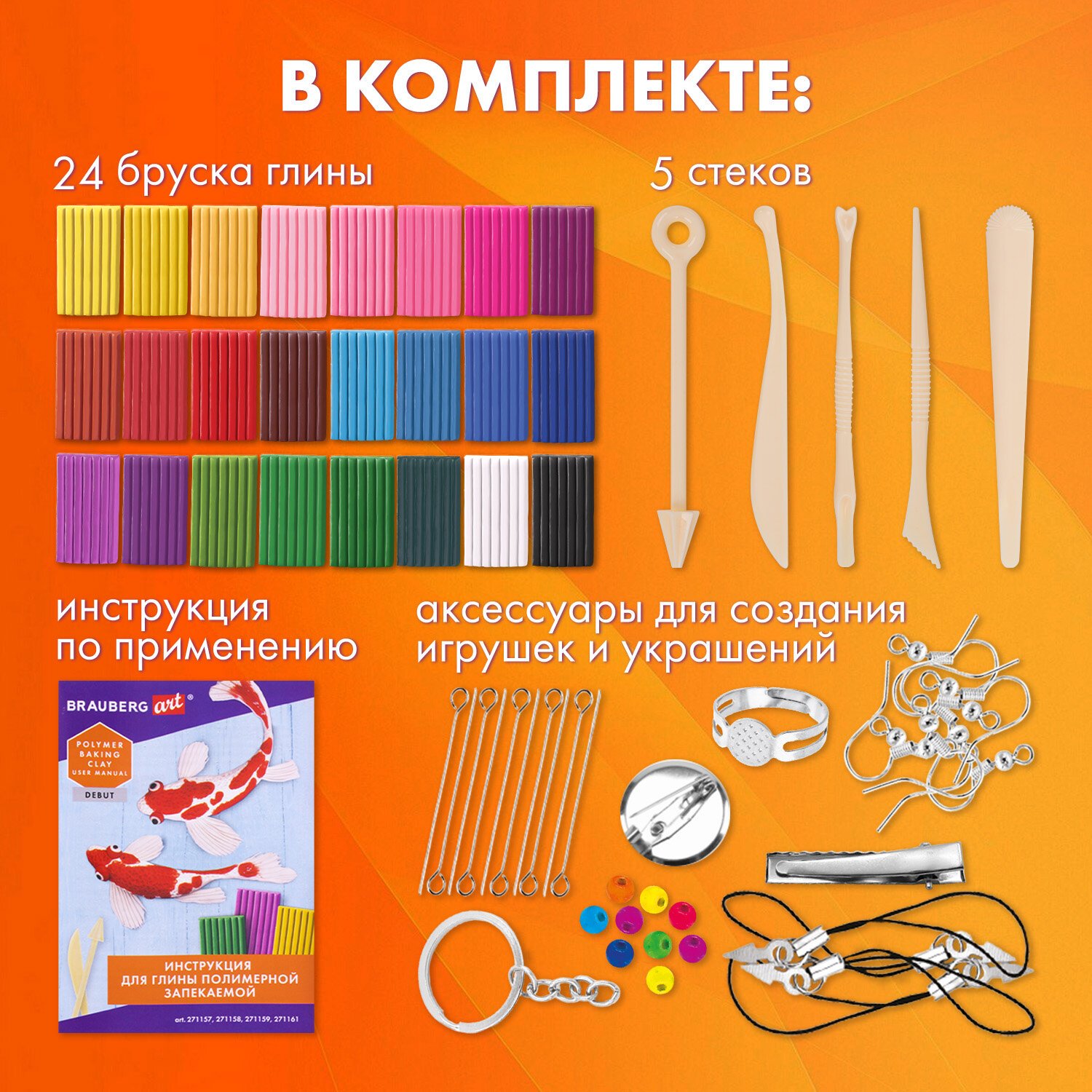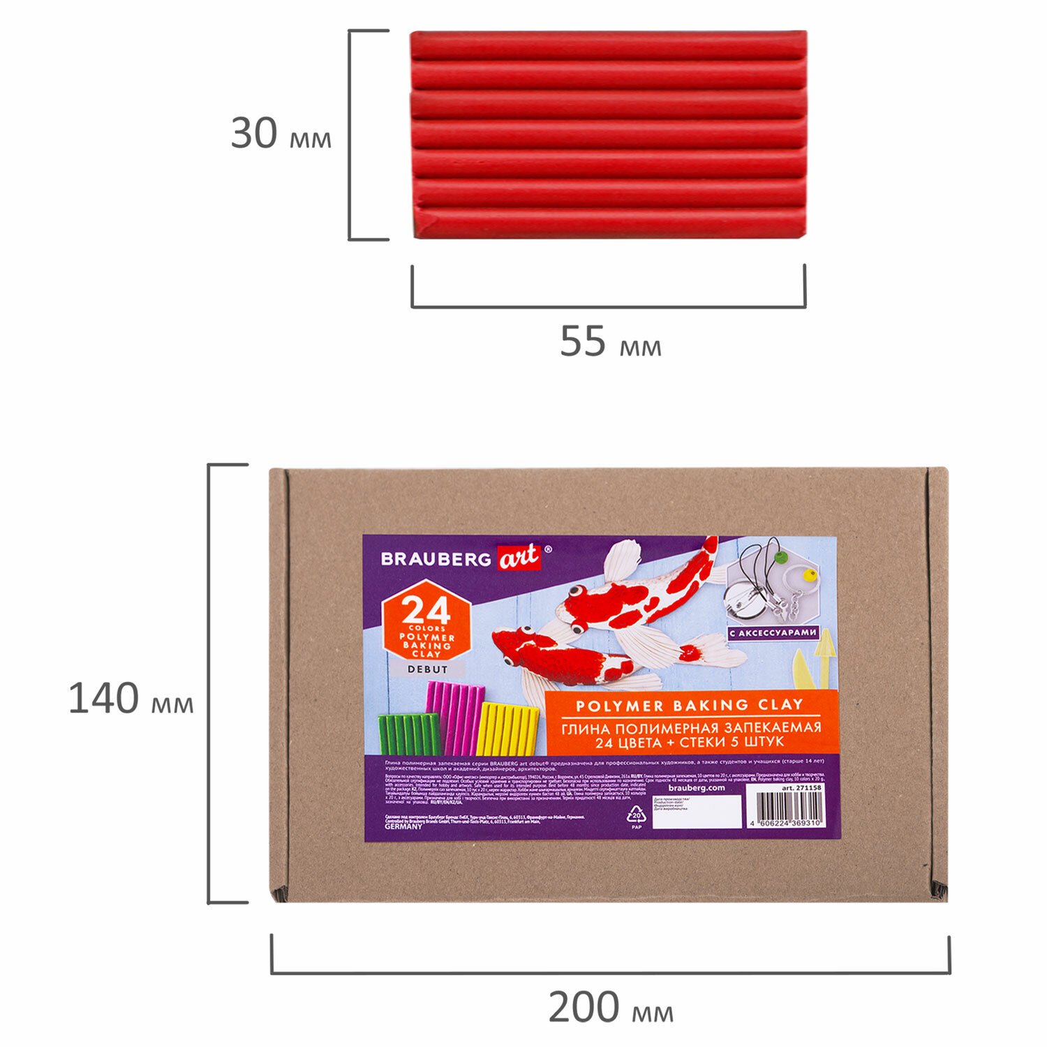 Глина полимерная запекаемая, НАБОР 24 цветов по 20 г, с аксессуарами, в гофрокоробе, BRAUBERG, 271158