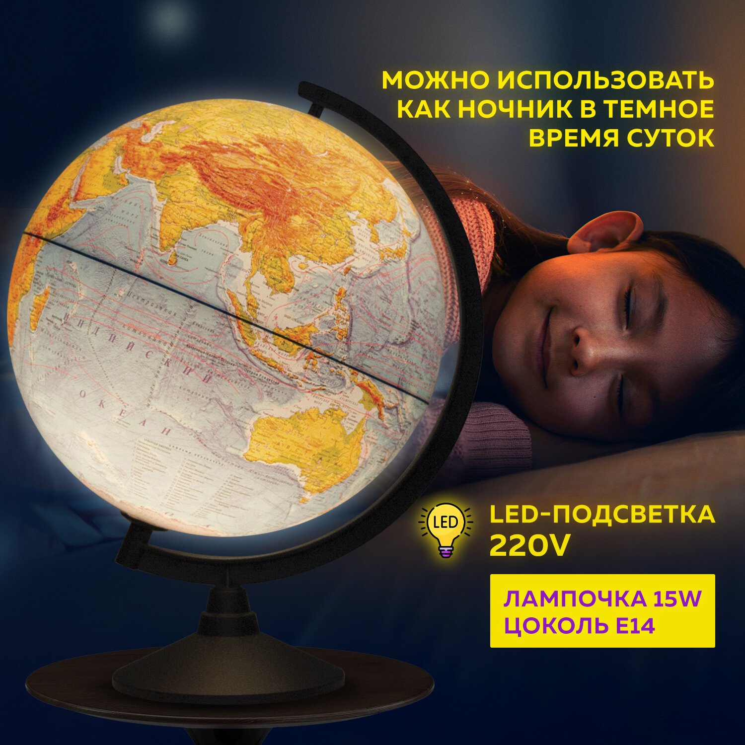 | Подсветка глобуса | да |