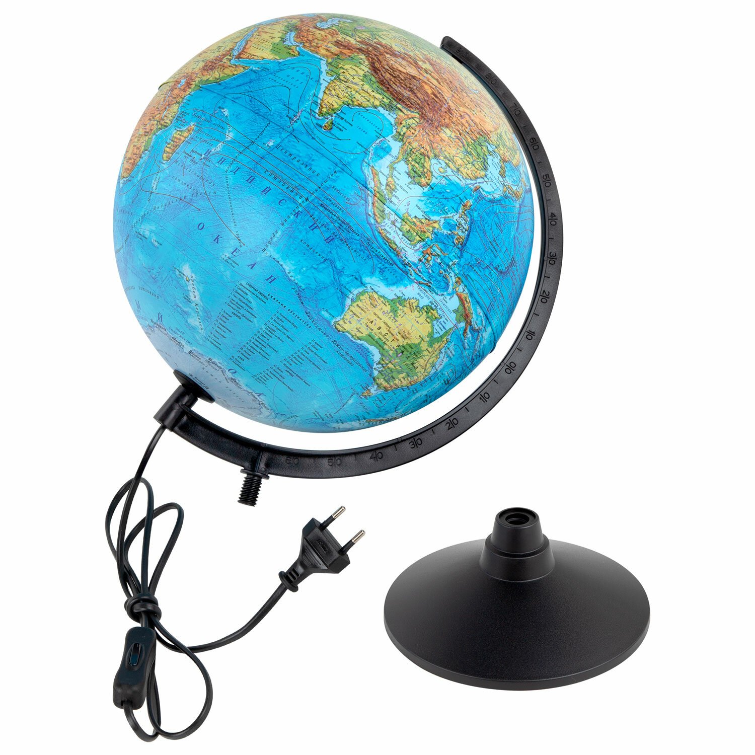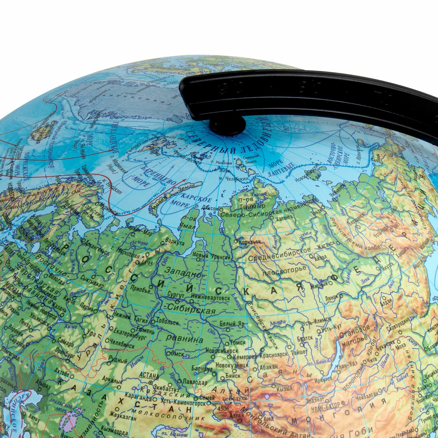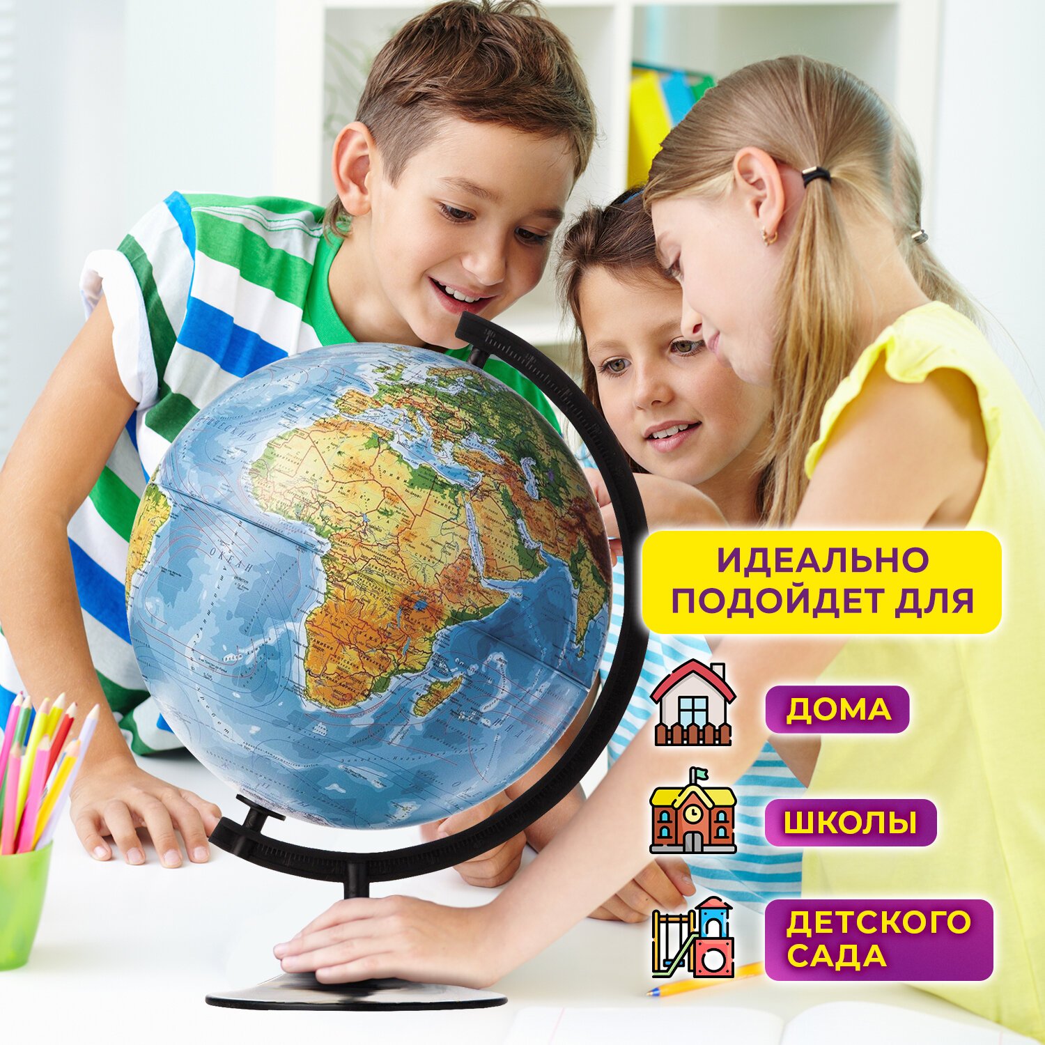 Глобус позволит ознакомиться с физической и политической картой мира. Подходит для использования в детских садах и школах. Поможет узнать об организационно-правовом (политическом) укладе территорий и рельефе земной поверхности.