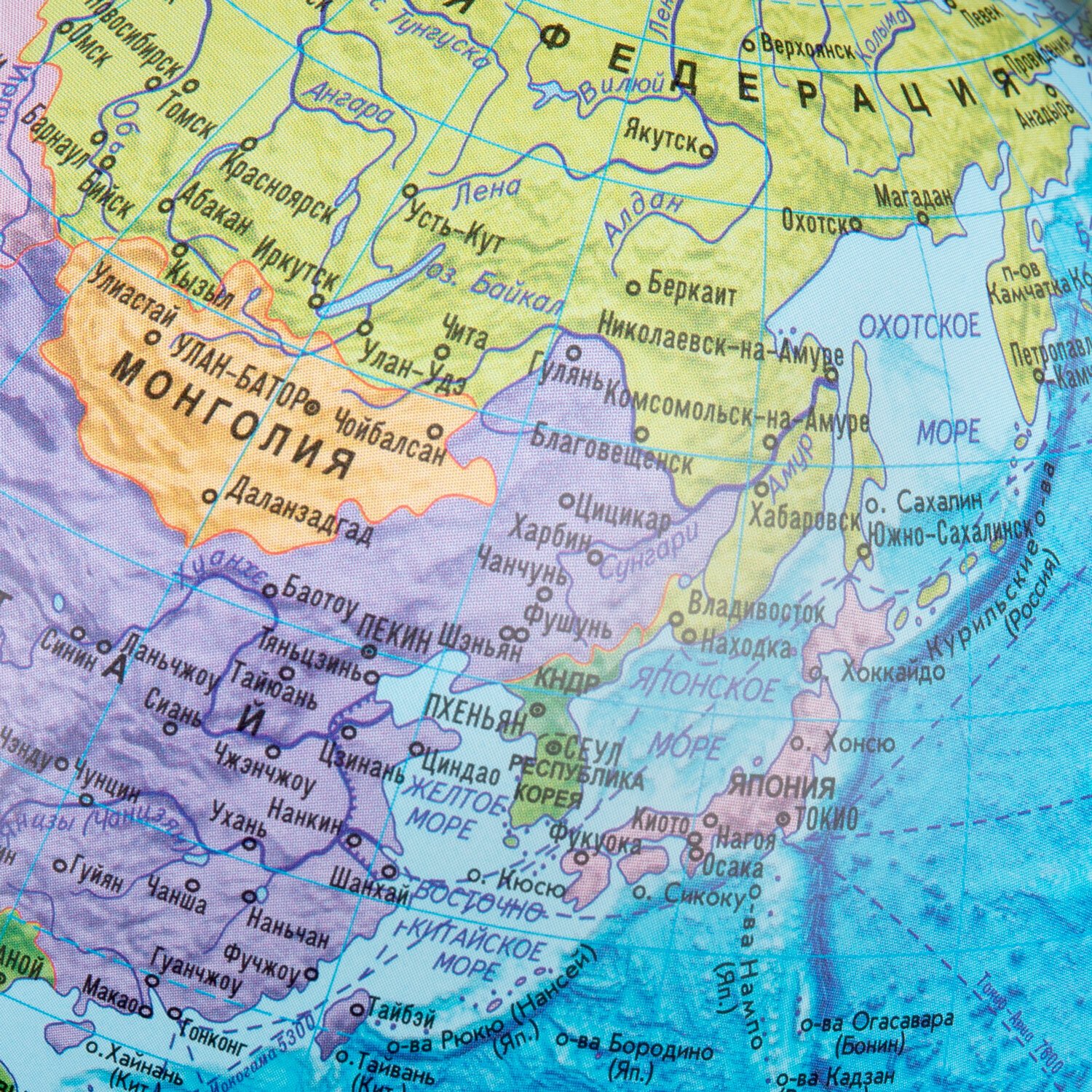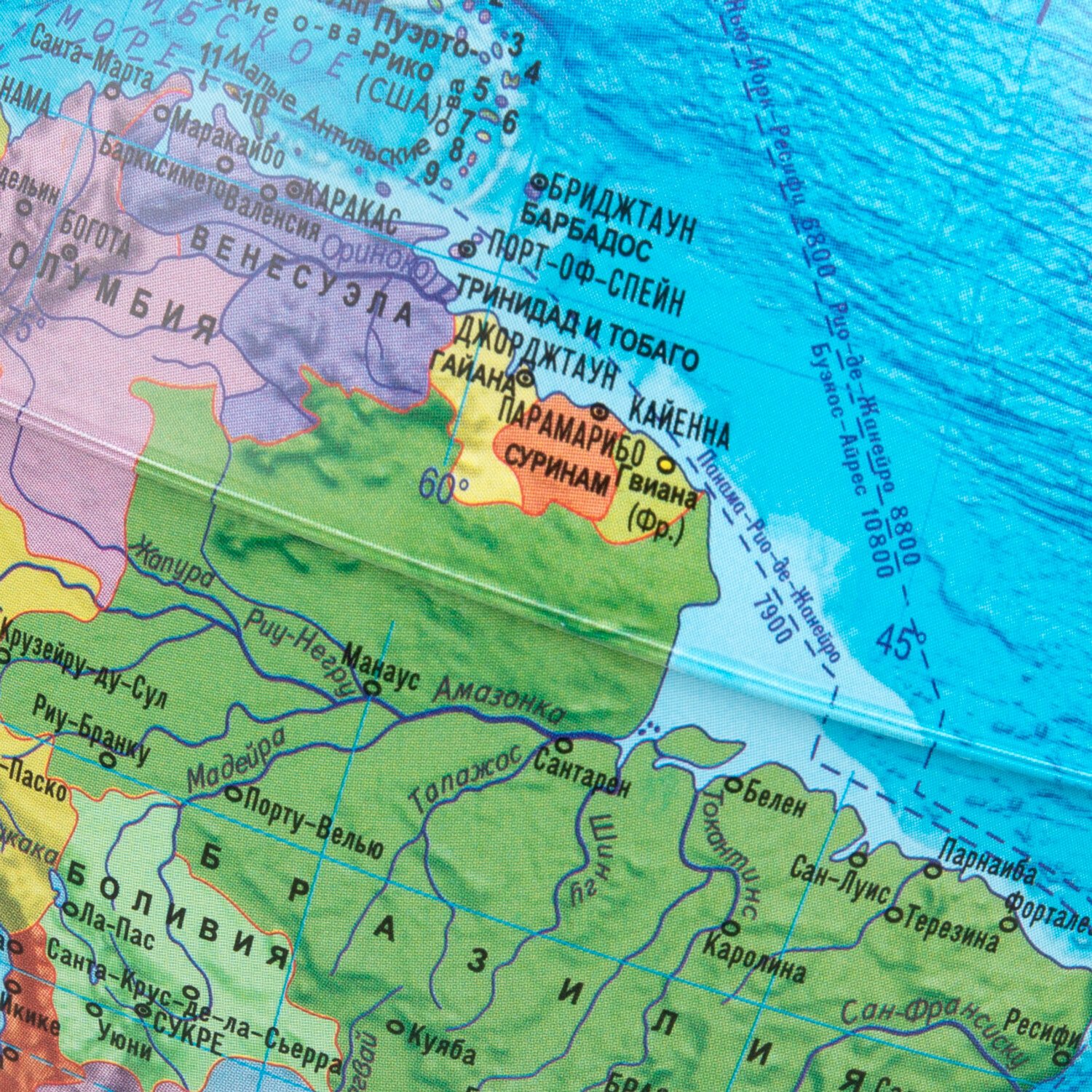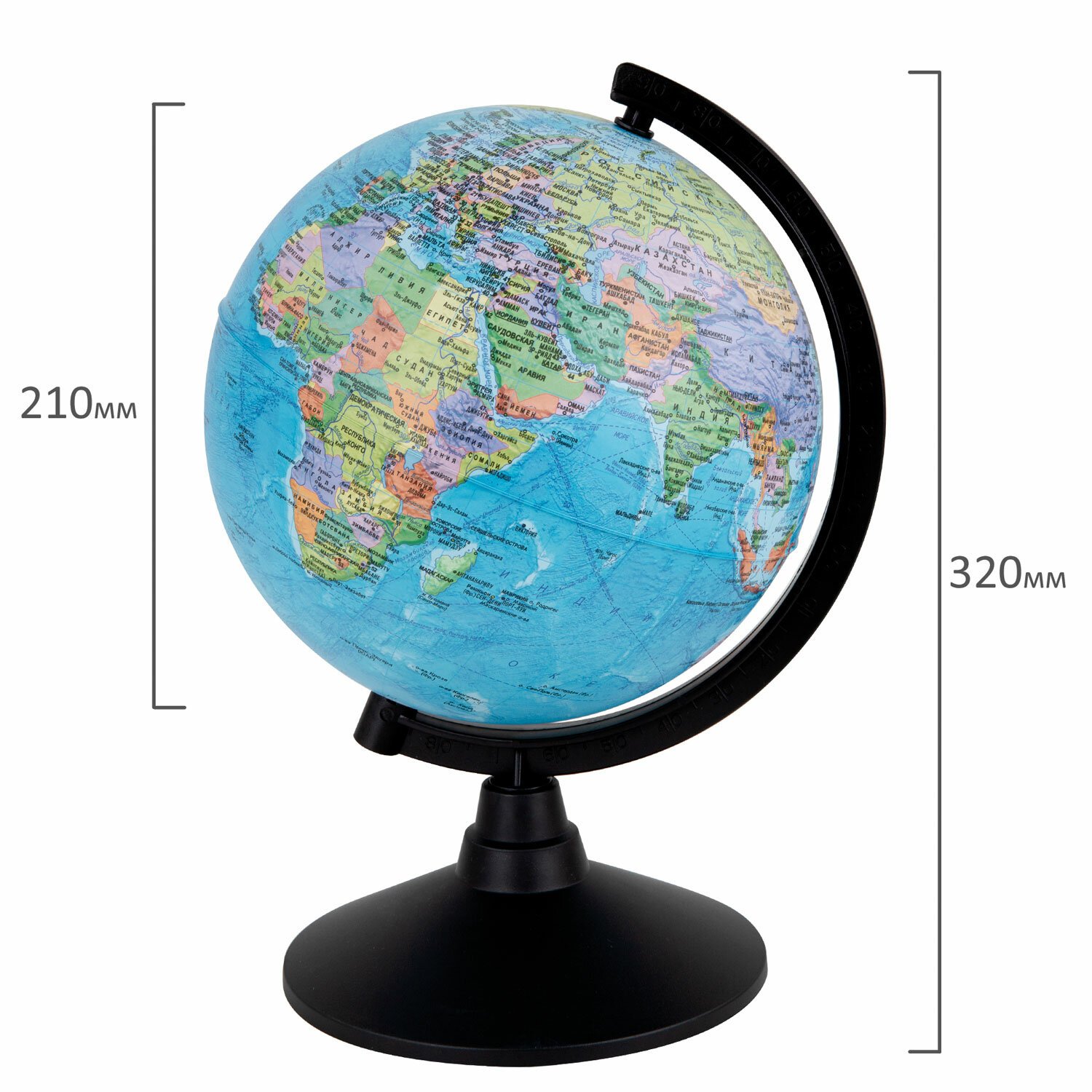 Глобус позволит ознакомиться с политической картой мира. Подходит для использования в детских садах и школах. Поможет узнать об организационно-правовом (политическом) укладе территорий, показывает сухопутные и морские границы государств и их столицы.