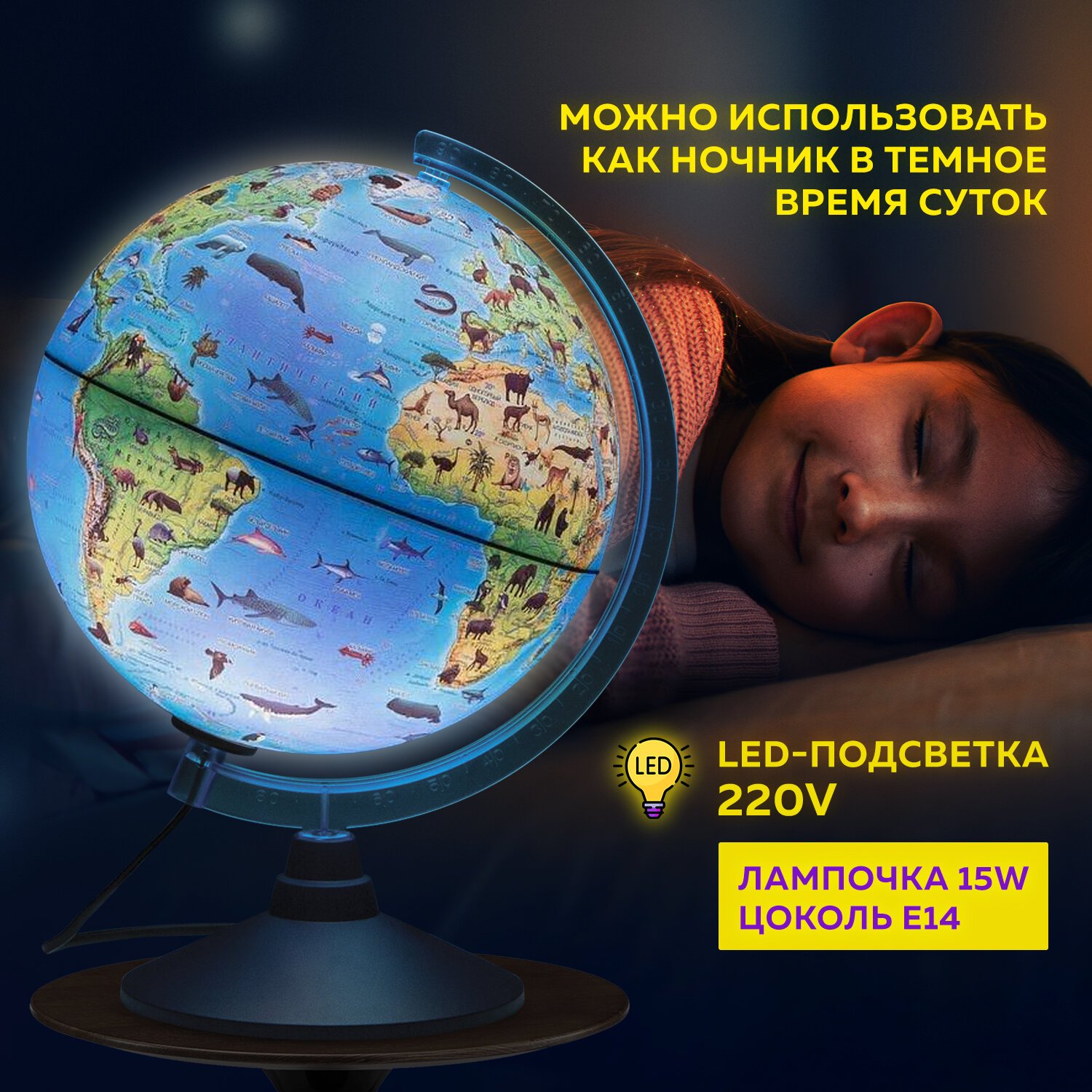 Глобус зоогеографический GLOBEN "Классик Евро", 25 см, с подсветкой, детский, Ке012500270