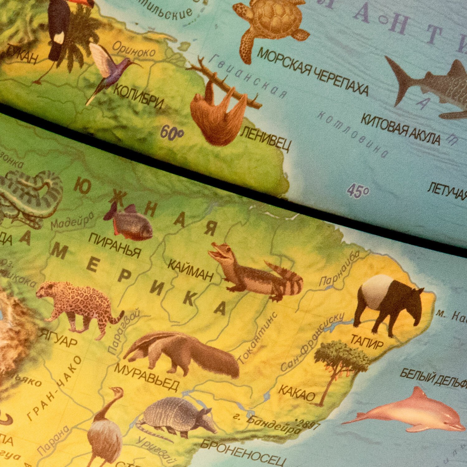 Глобус зоогеографический. Подходит для использования в детских садах и школах. Предназначен для изучения географии и животных, населяющих разные уголки нашей планеты.