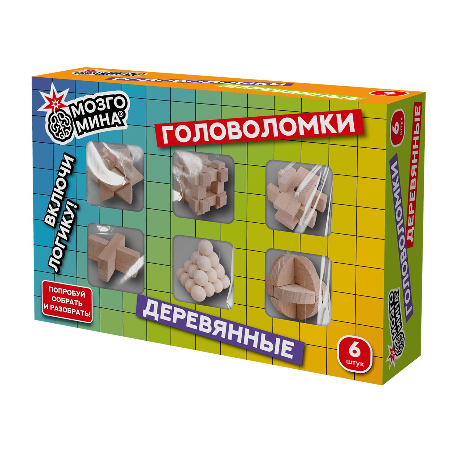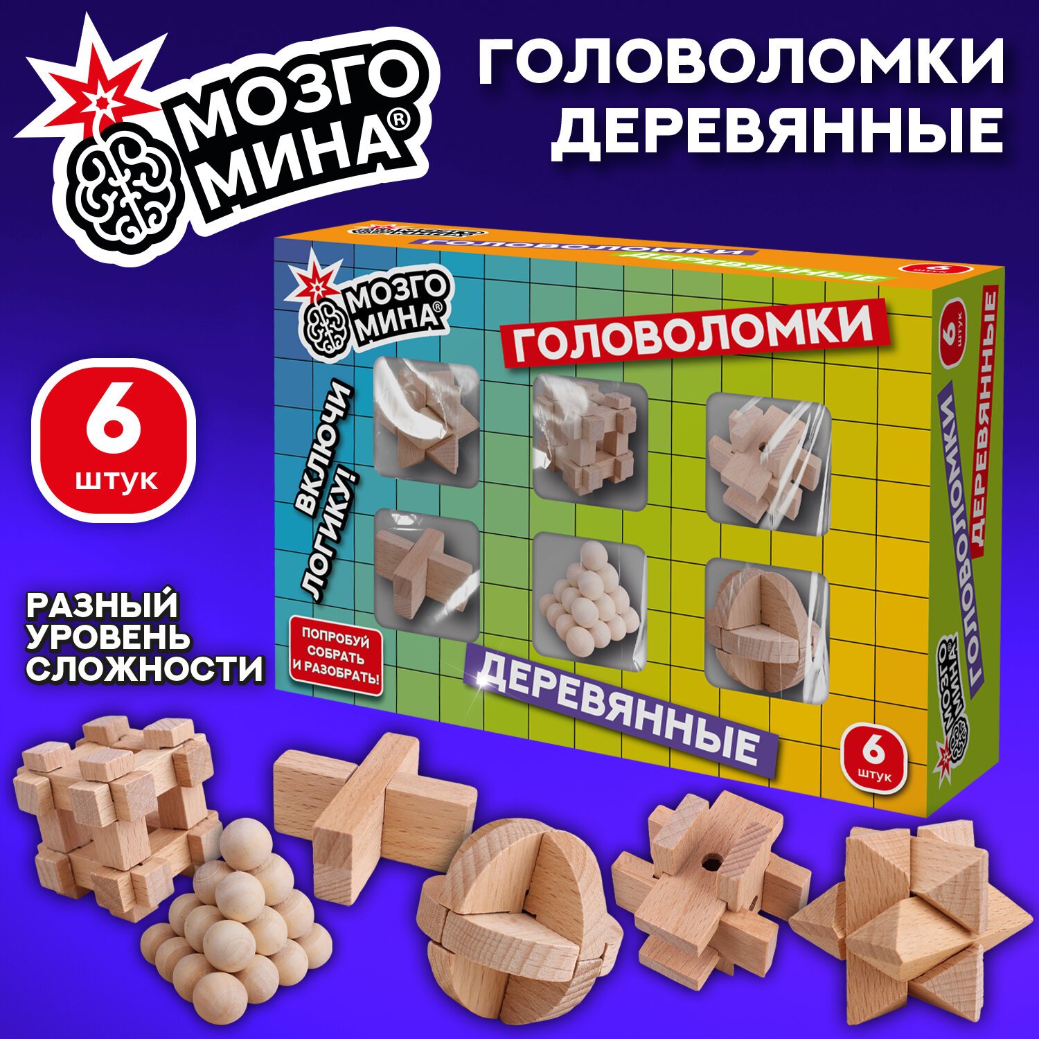 Головоломки деревянные, набор 6 штук, разные уровни сложности, МозгоМина, 666426