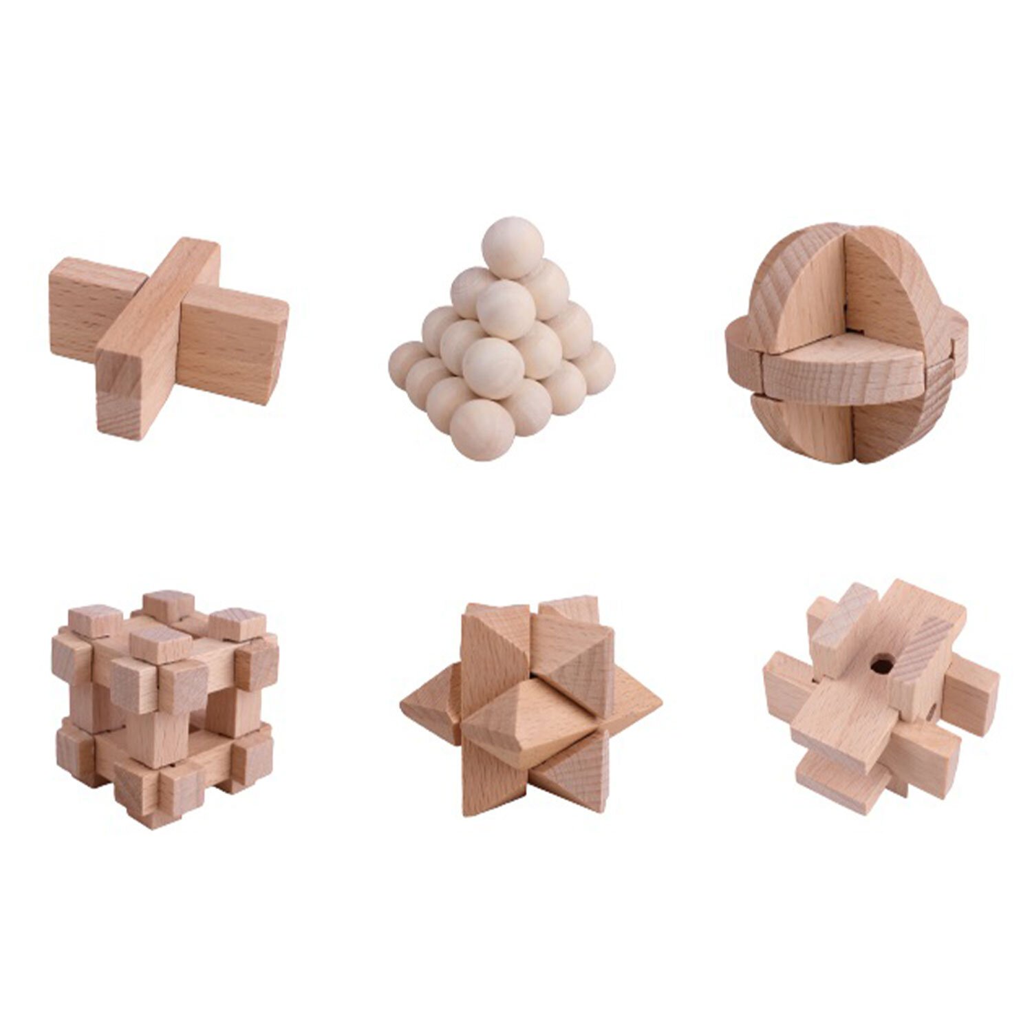 Головоломка представляет собой два или несколько элементов. Смысл решения головоломки в том, чтобы разъединить ее элементы, а затем соединить снова. В комплекте 6 разных деревянных головоломок, решение находится внутри.