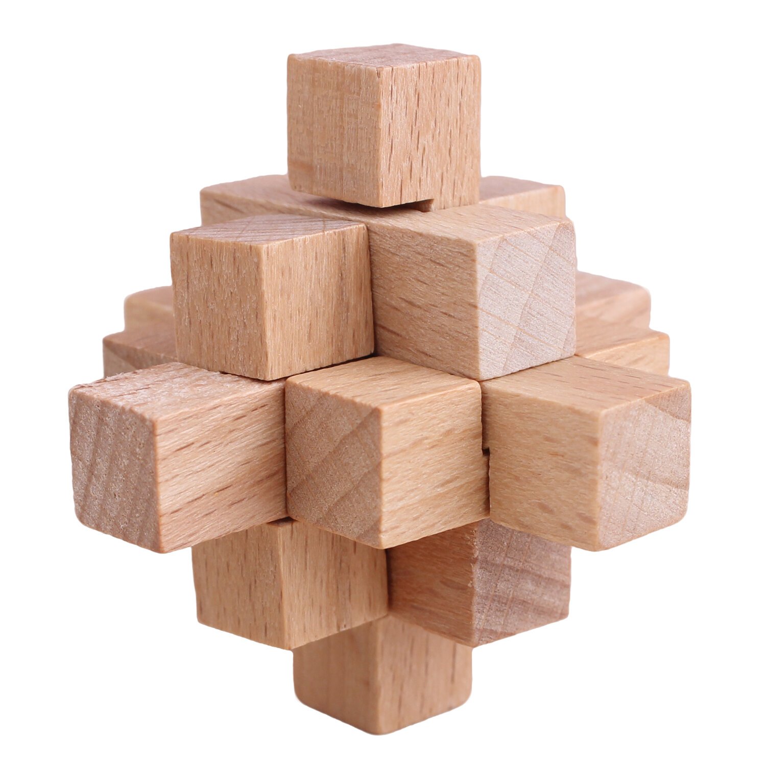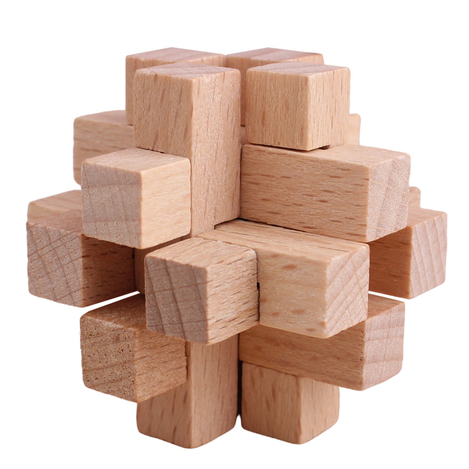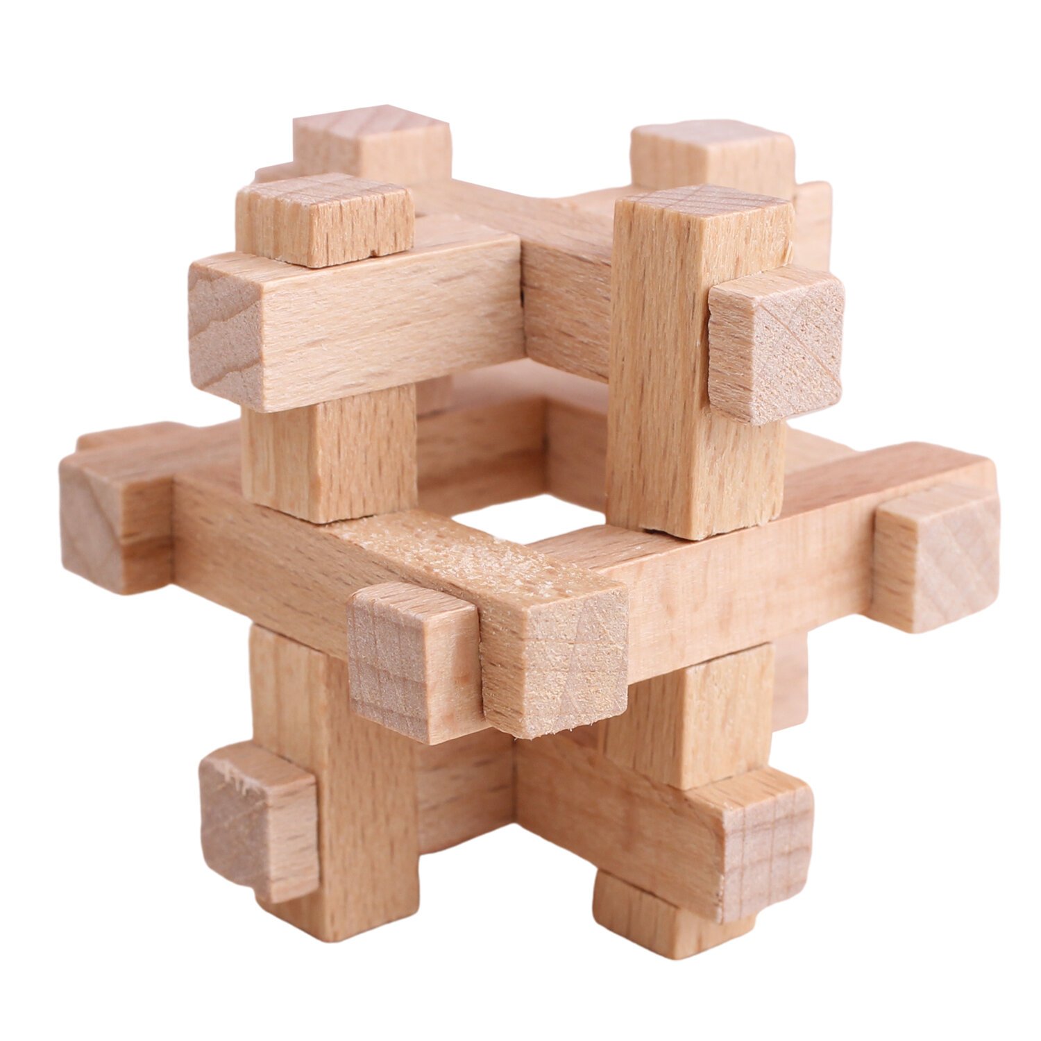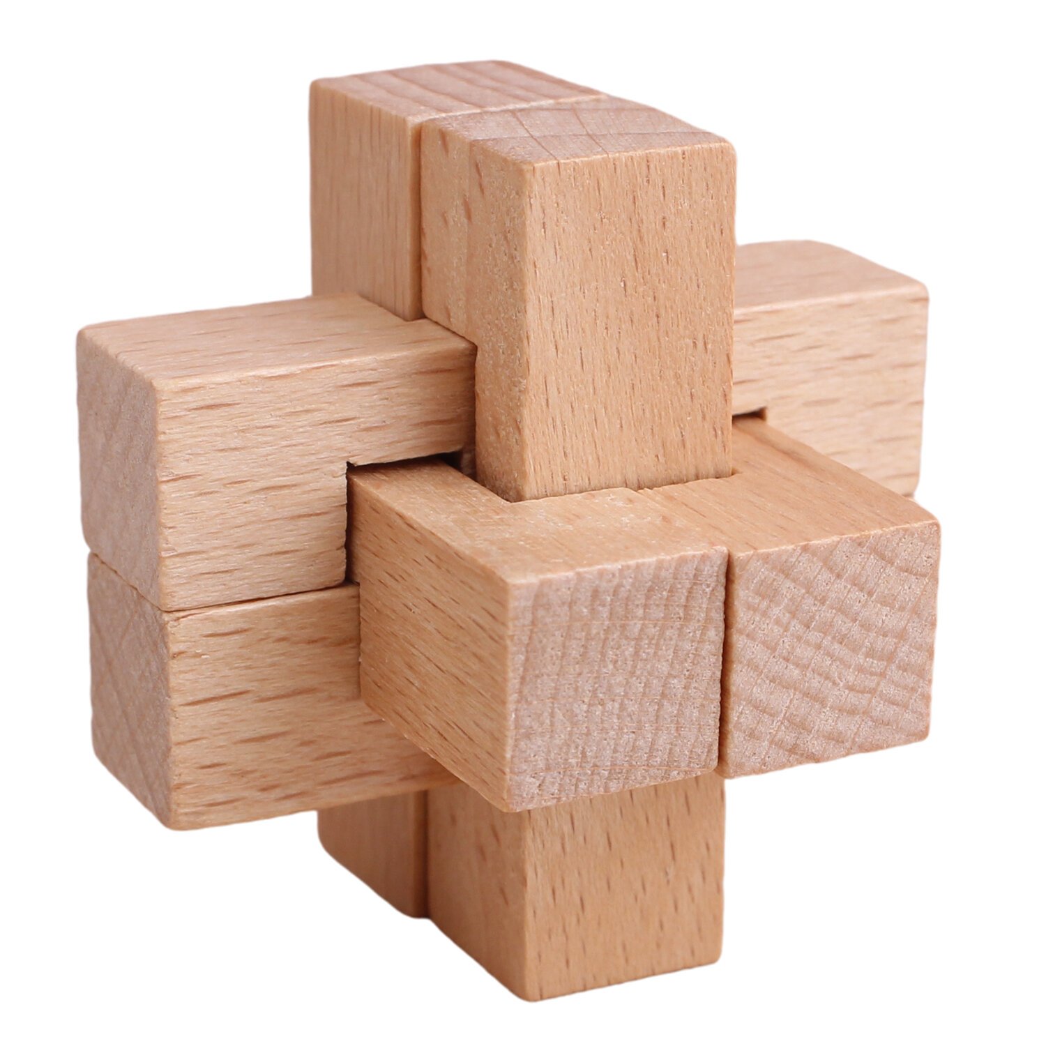 Головоломка представляет собой два или несколько элементов. Смысл решения головоломки в том, чтобы разъединить ее элементы, а затем соединить снова. В комплекте 9 разных деревянных головоломок, решение находится внутри.