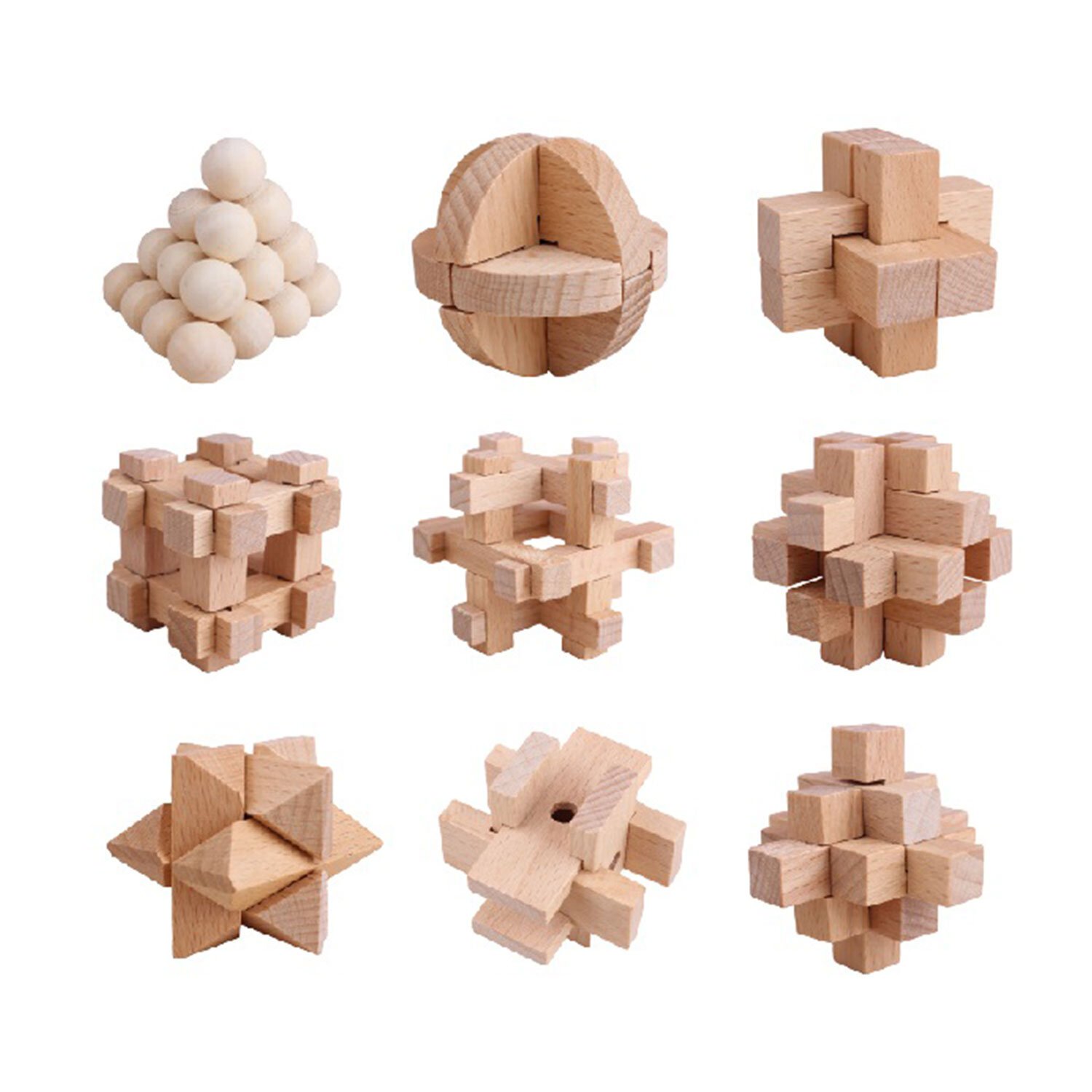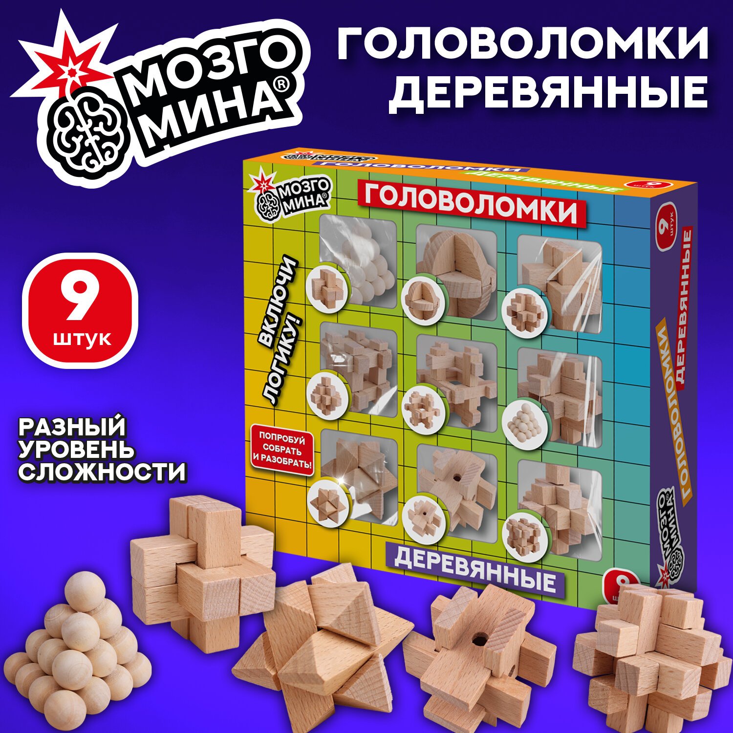 Головоломки деревянные, набор 9 штук, разные уровни сложности, МозгоМина, 666425