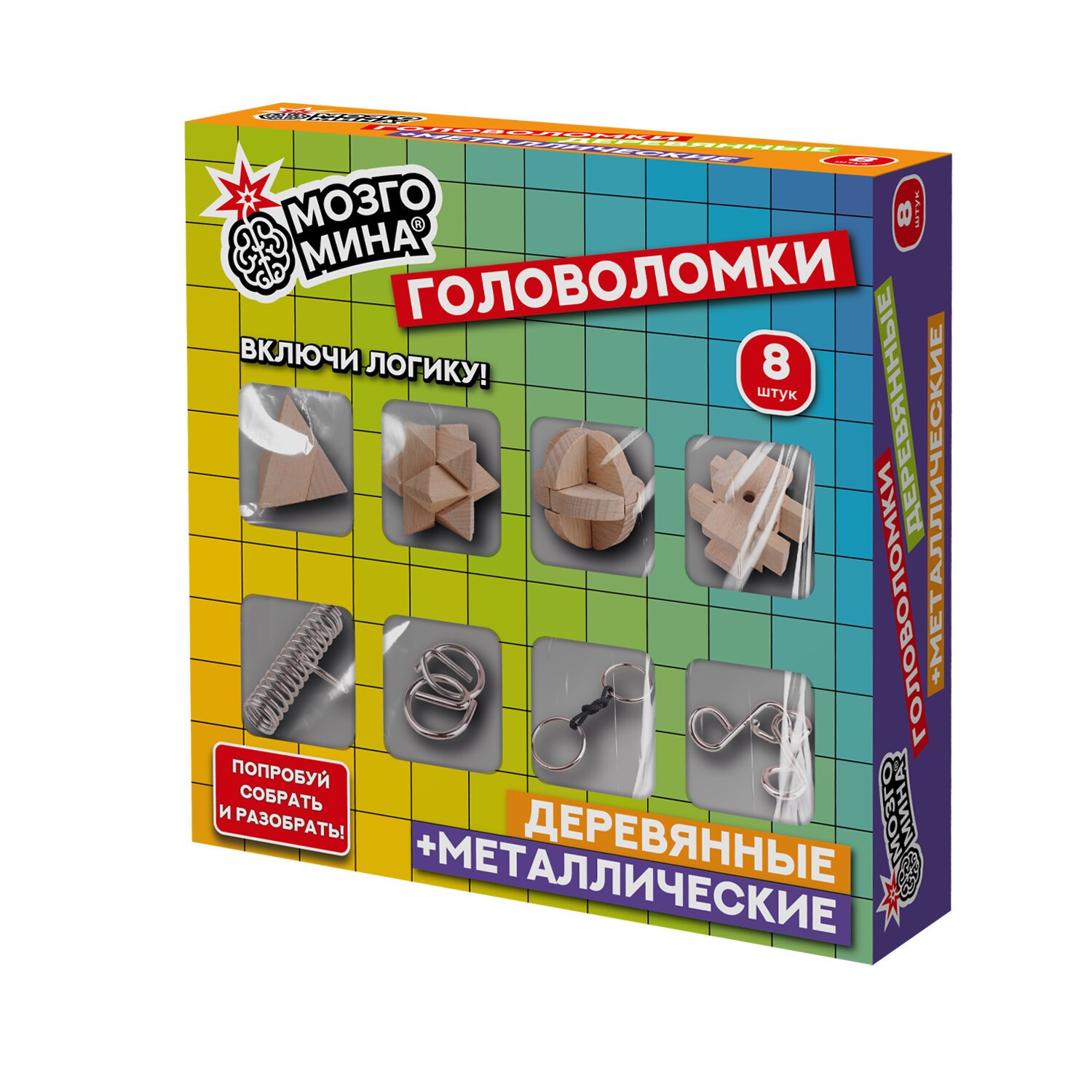 Головоломки металлические и деревянные, набор 8 шт, разные уровни сложности, МозгоМина, 666428