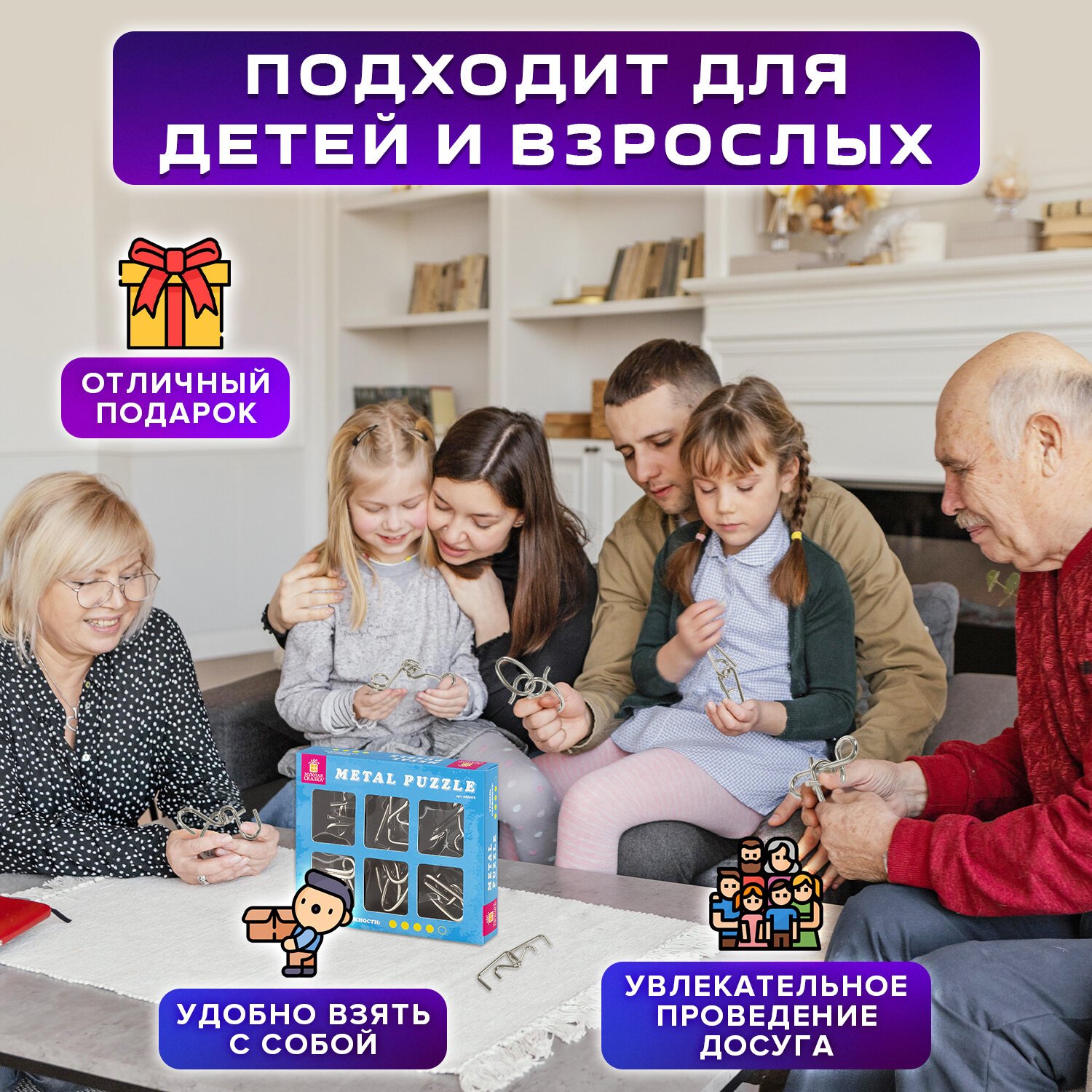 Головоломки металлические большие ЗОЛОТАЯ СКАЗКА, набор 6 штук, MEDIUM level, 664926