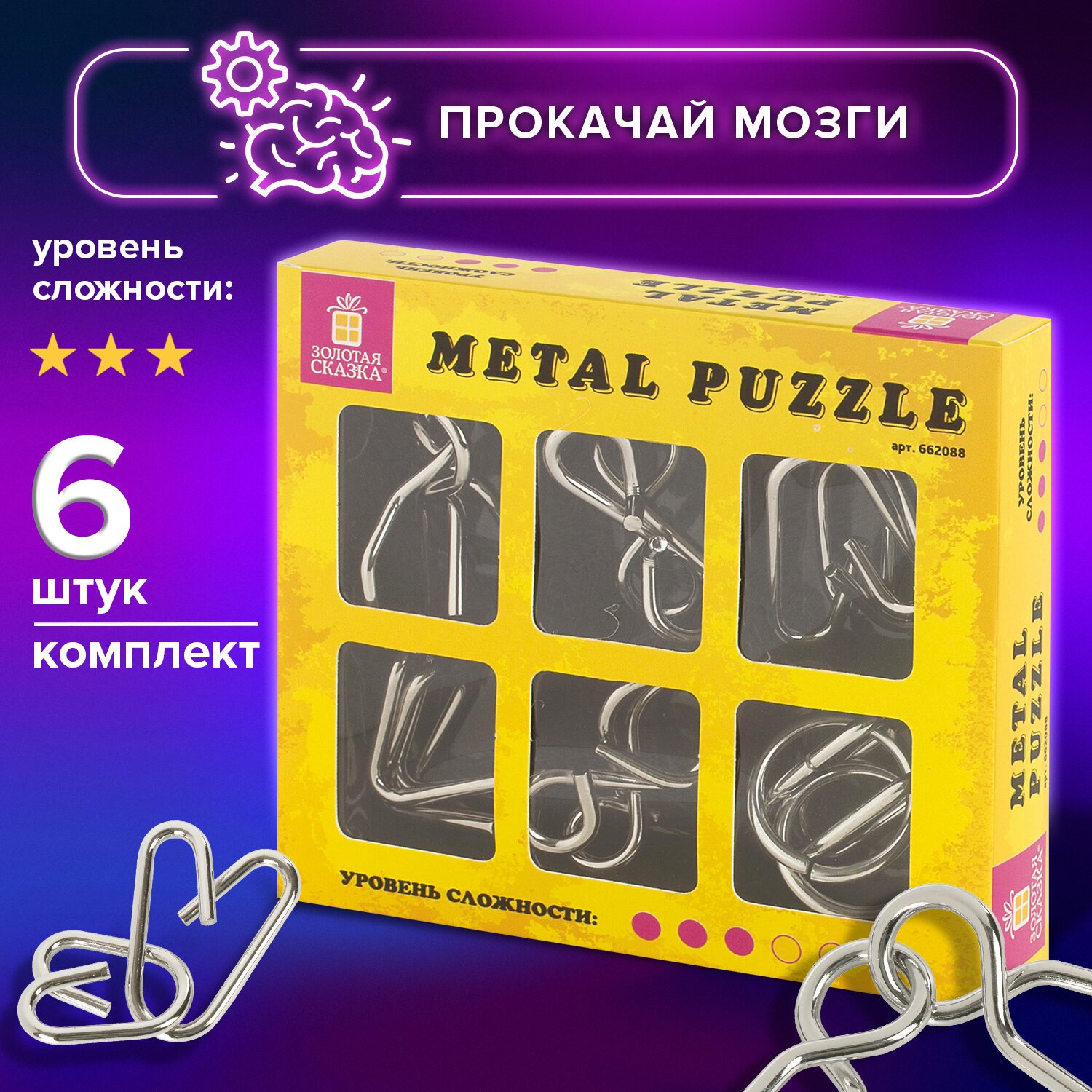 Головоломки металлические ЗОЛОТАЯ СКАЗКА (уровень сложности "ЭКСПЕРТ"), набор 6 штук, 662089