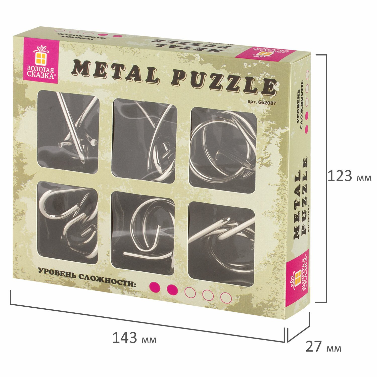 Головоломки металлические ЗОЛОТАЯ СКАЗКА (уровень сложности "ЛЮБИТЕЛЬ"), набор 6 штук, 662088