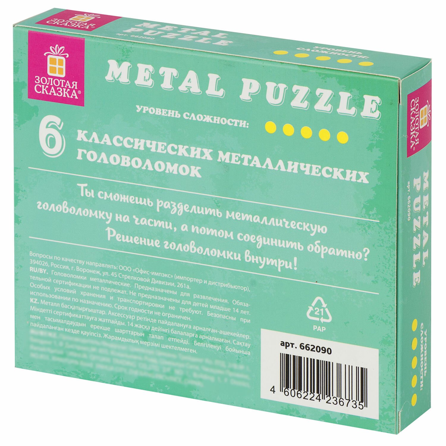 Головоломки металлические ЗОЛОТАЯ СКАЗКА (уровень сложности "ЛЮБИТЕЛЬ"), набор 6 штук, 662088