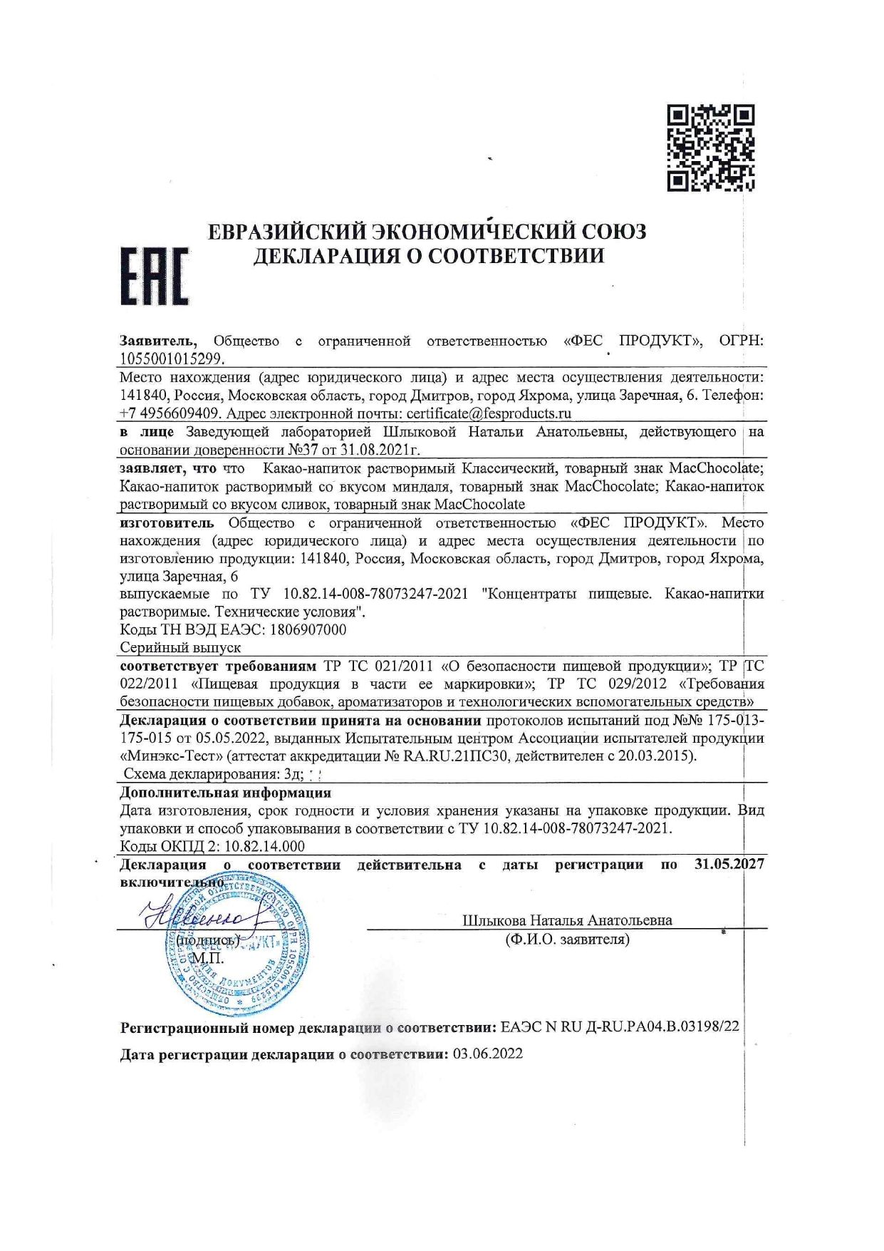 MACCHOCOLATE – это растворимый горячий шоколад высокого качества, который содержит натуральный какао-порошок и отличается насыщенным вкусом и ароматом.