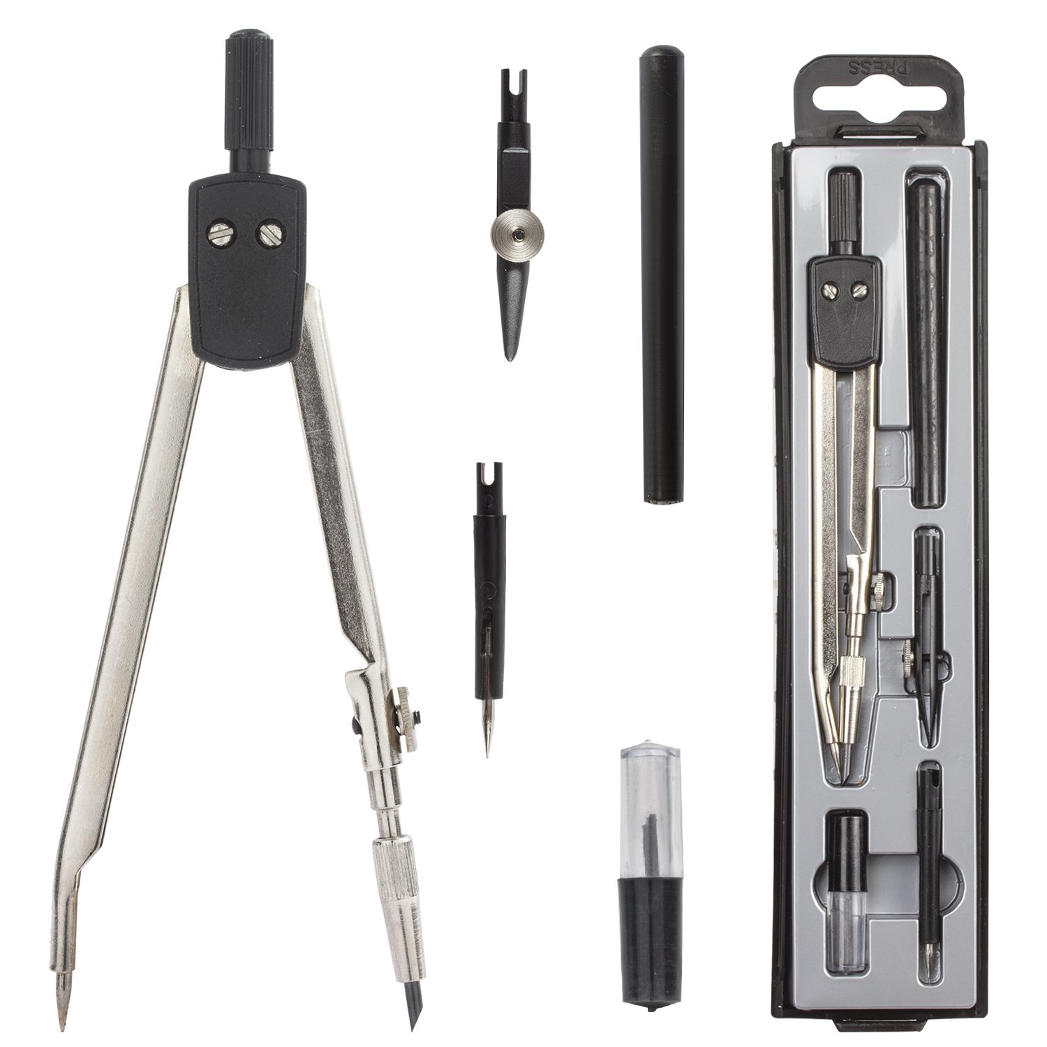 Готовальня BRAUBERG "Klasse", 7 предметов: циркуль+кронциркуль, рейсфедер + держатель, 2 вставки, грифель, 210344