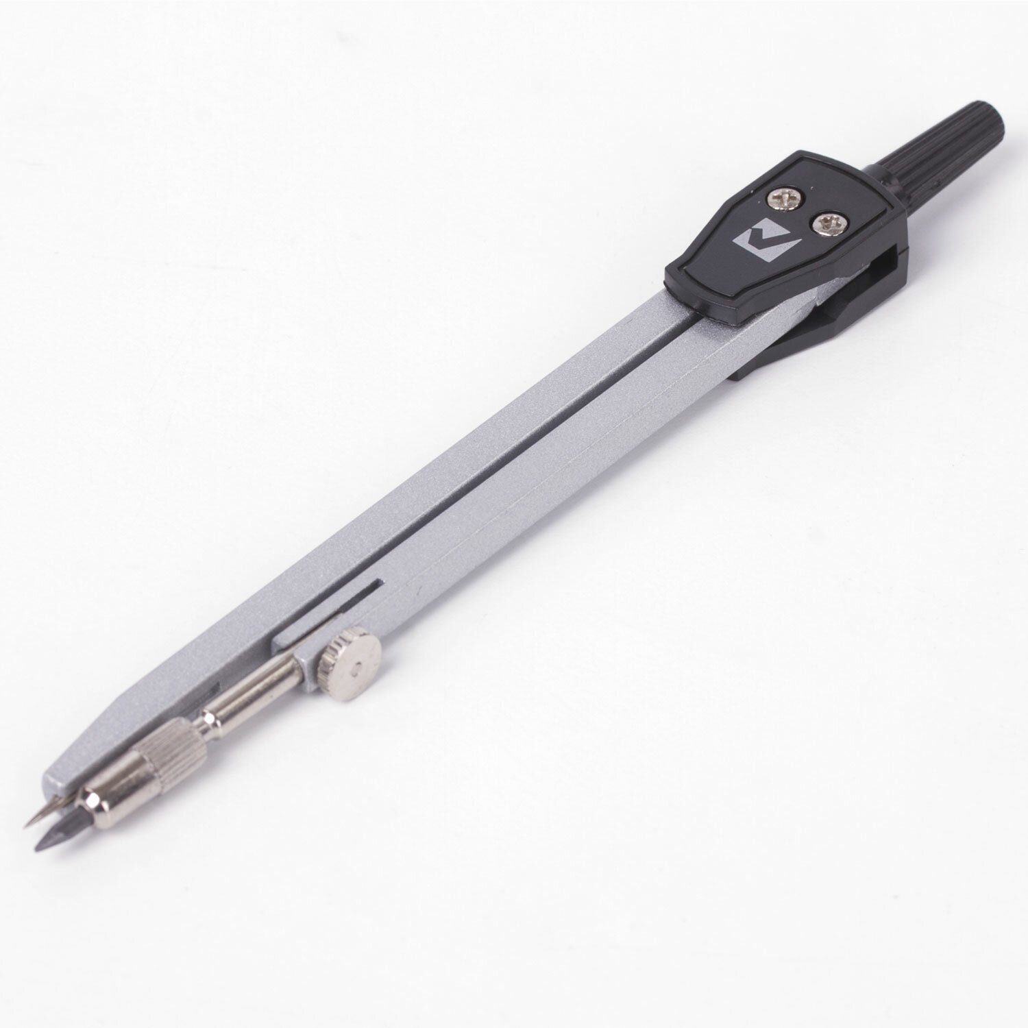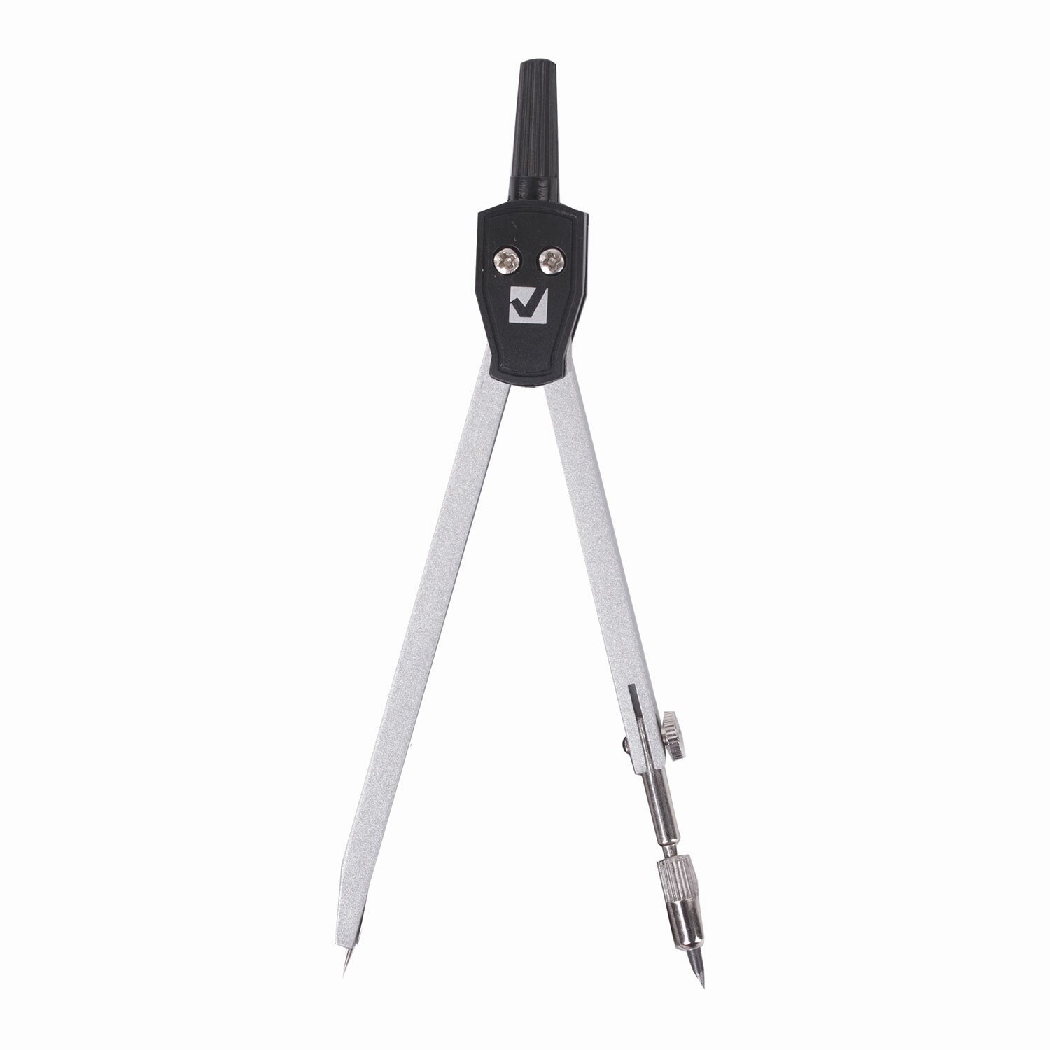 Циркуль длиной 135 мм имеет несгибаемые штанги. Изготовлен из металла, дополнительный цвет элементов – черный.