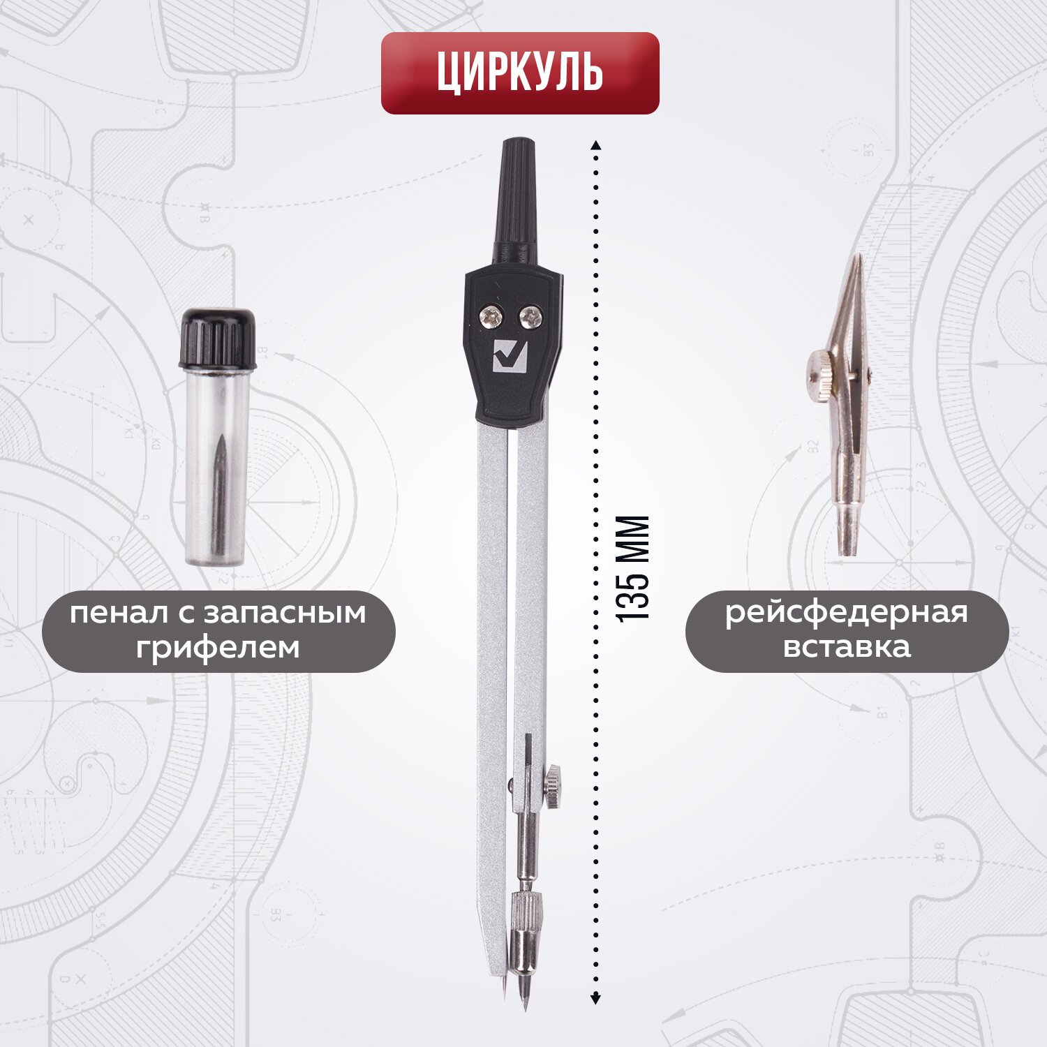 Готовальня BRAUBERG "Architect", 3 предмета: циркуль 135 мм, рейсфедерная вставка, грифель, 210331