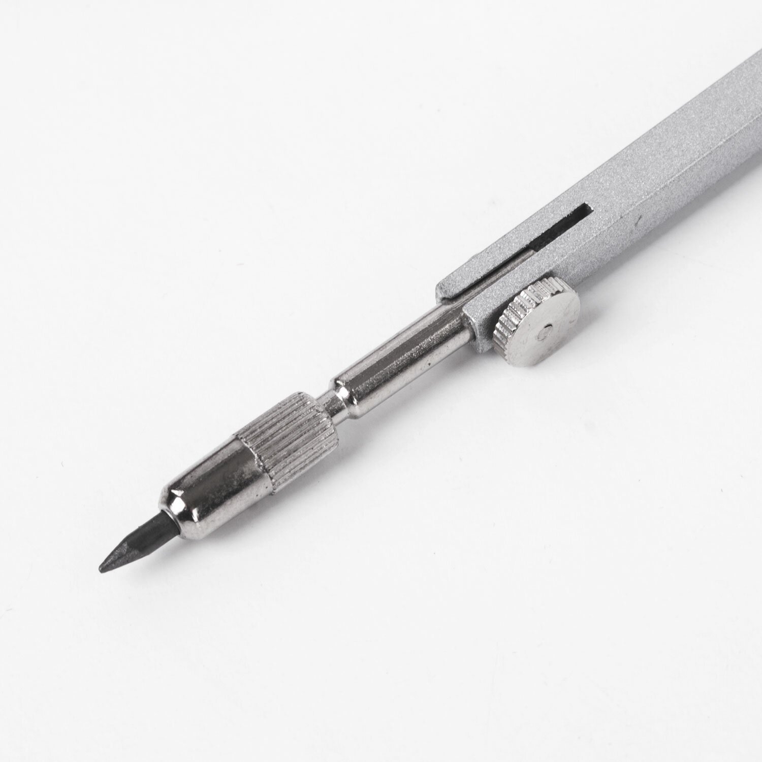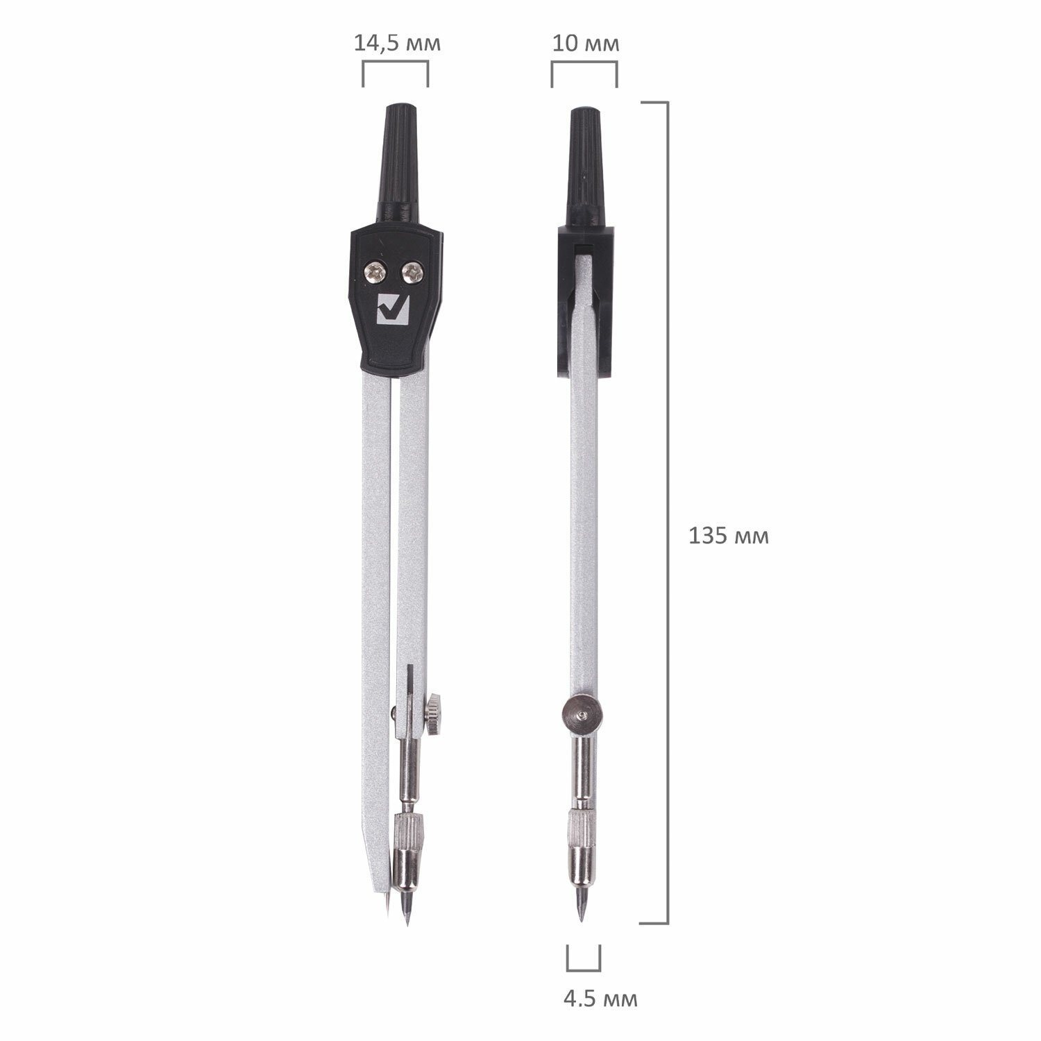 Циркуль длиной 135 мм имеет несгибаемые штанги. Изготовлен из металла, дополнительный цвет элементов – черный.