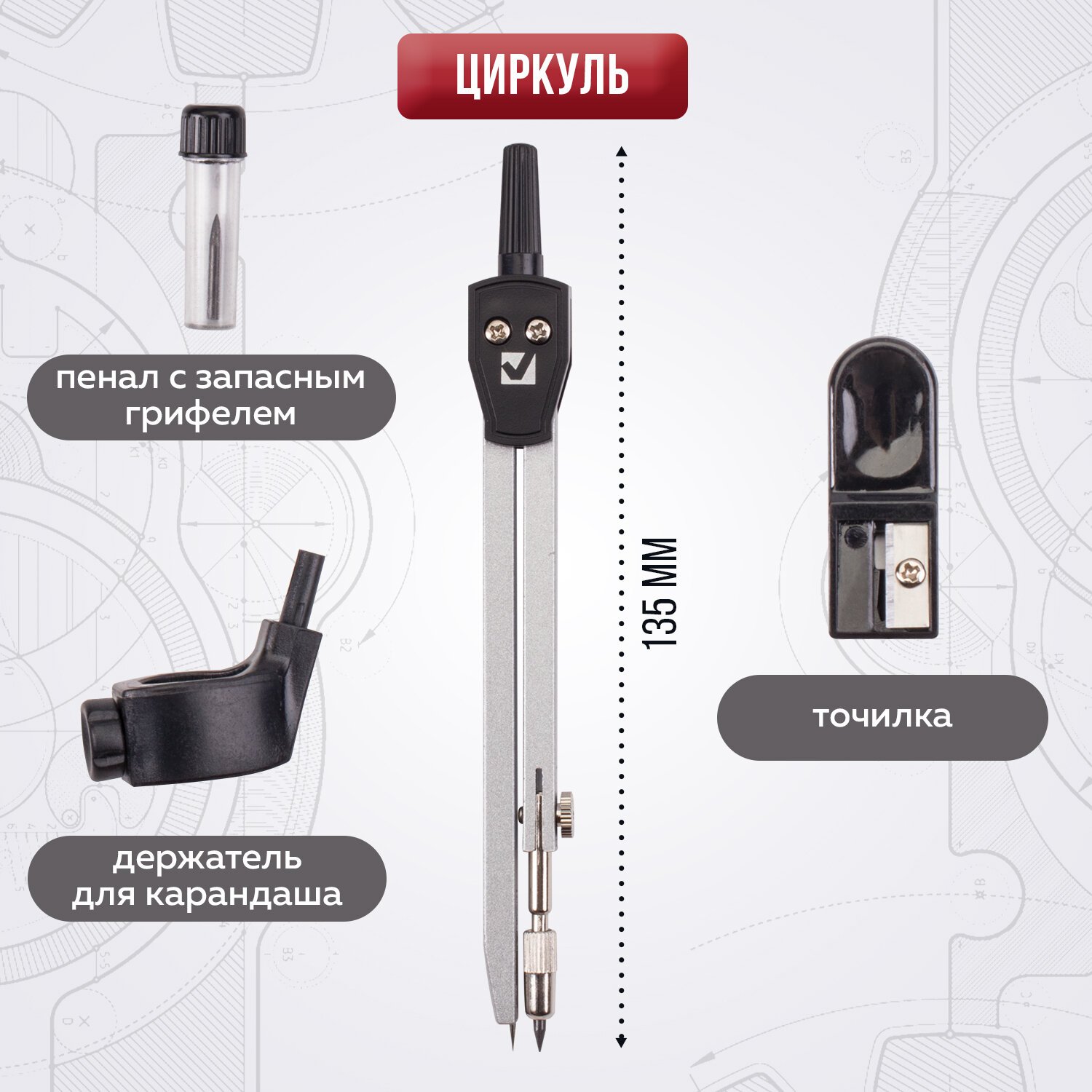 Металлическая готовальня BRAUBERG "Architect" предназначена для выполнения чертежных работ. Для учеников старших классов и студентов.