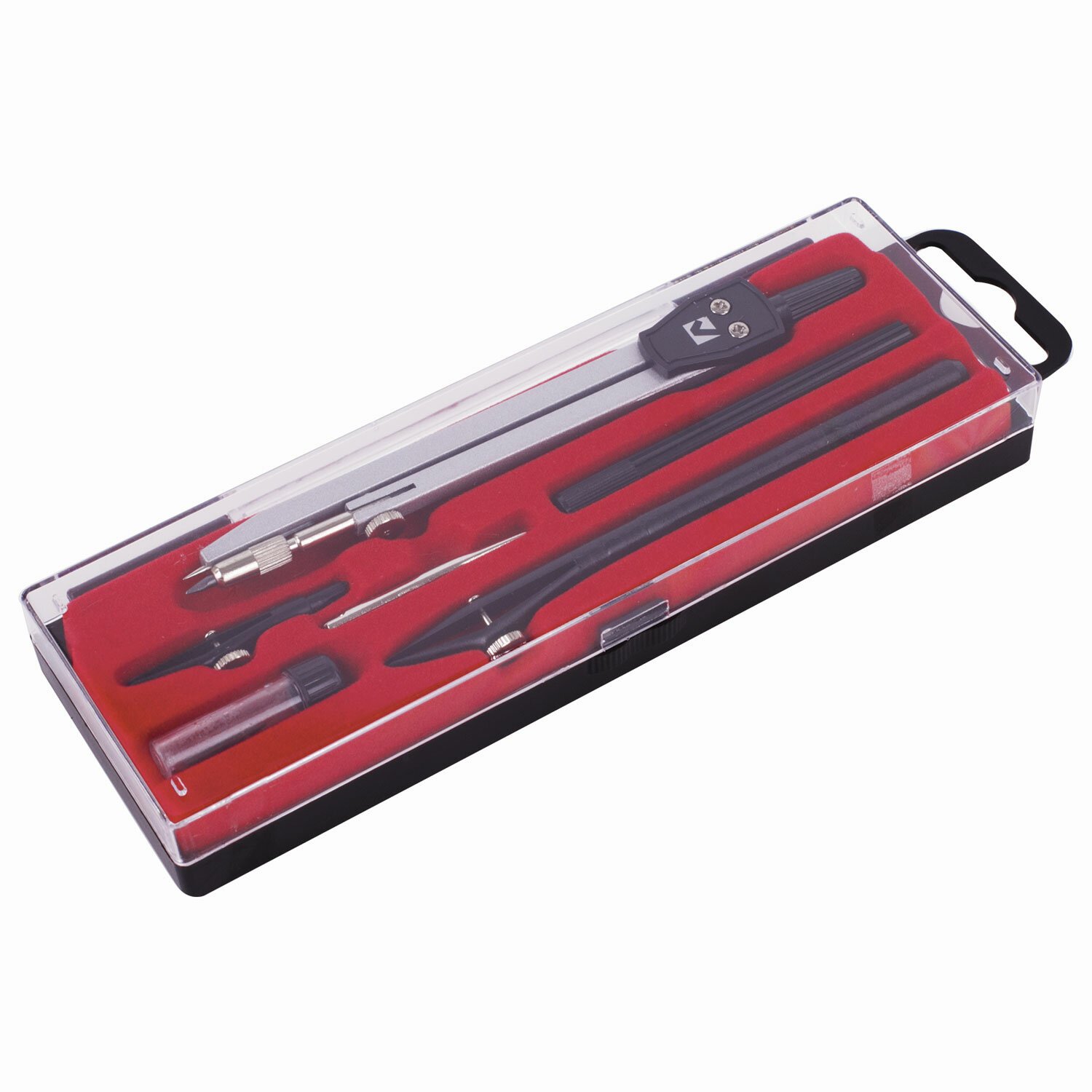 Готовальня BRAUBERG "Klasse", 5 предметов: циркуль 125 мм, 2 вставки, грифель, точилка, пенал с подвесом, 210336