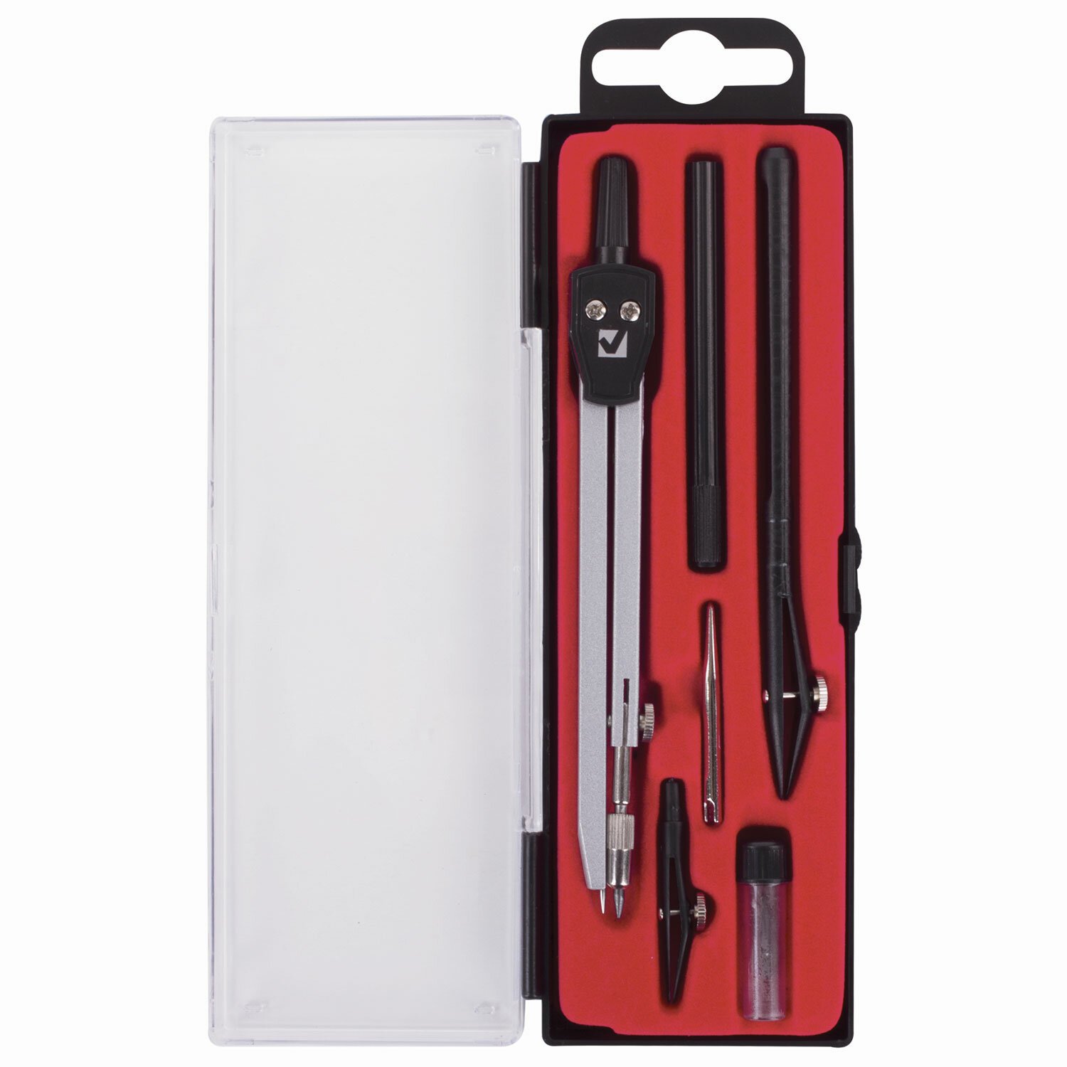 Готовальня BRAUBERG "Architect", 5 предметов: циркуль 135 мм, 2 вставки, держатель, грифель, 210658